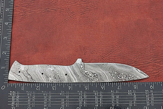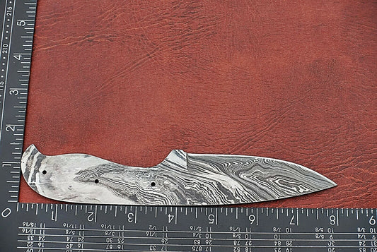 8.5" long Damascus steel drop point blank blade, 4" cutting edge