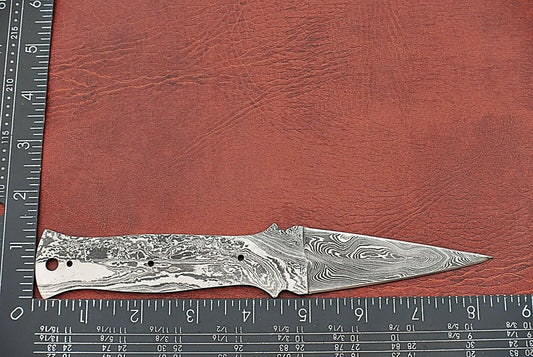 7.75" drop point Damascus steel blank blade pocket knife with 3.5" cutting edge