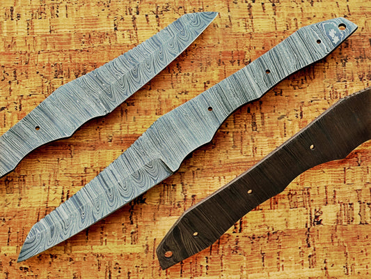 Twist pattern Damascus steel clip point blank blade, 8.5 inches long full tang blank blade with 3.75 cutting edge, 3 finger groove scale with 3 pins, knife making supplies