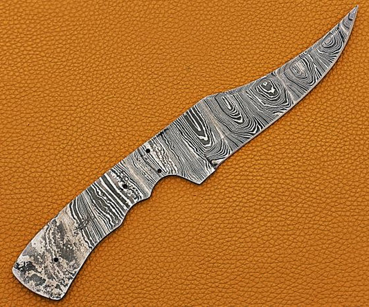 10.5 inches Kukri Point Blade Skinning Knife, Hand Forged Twist Pattern Damascus Steel Blank Blade, 6 inches Blade with 5.5" Cutting Edge, 4.5" Scale Space with 4 pin Hole