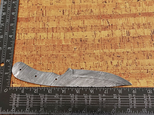 8 inches Long Hand Forged Ladder Damascus Steel Drop Point Blank Blade Skinning Knife, 4.5" Scale Space with 5 pin Hole. 3.25 inches Cutting Edge