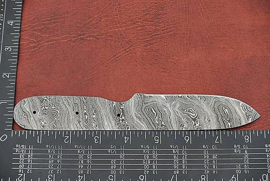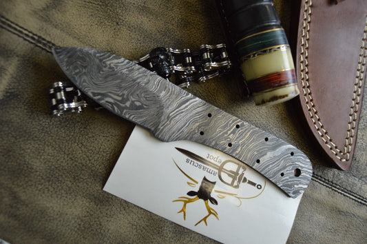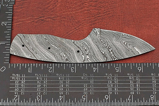 7.5" hand forged Damascus steel blank blade 3.25" cutting edge, 9 scale holes