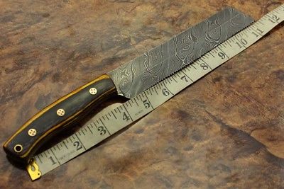 13 Inches long custom made Damascus steel full tang blade chopper chef Knife 7.5" long cutting edge Rose Wood scale with inserting hole