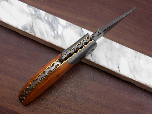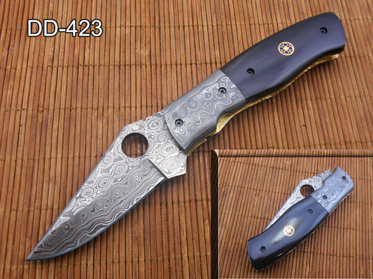 Huge variety of hand forged Damascus steel folding knives. Our folding knives features reliable liner lock mechanism, easy to operate thumb knob and great craftsmanship. All of our folding knives comes with Leather sheath that can be worn on belt.
