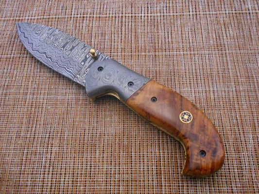 Huge variety of hand forged Damascus steel folding knives. Our folding knives features reliable liner lock mechanism, easy to operate thumb knob and great craftsmanship. All of our folding knives comes with Leather sheath that can be worn on belt.