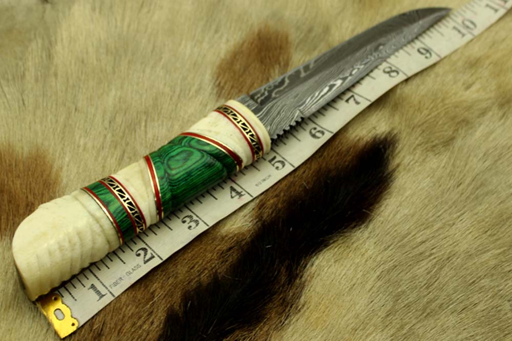 - Overall 10.5 Inches Long with 5.2″ Damascus steel 5.2 Inches hand crafted round scale