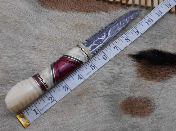 Overall 10.5 Inches Long with 5.2″ Damascus steel 5.2 Inches hand crafted round scale Fire pattern Damascus steel blade