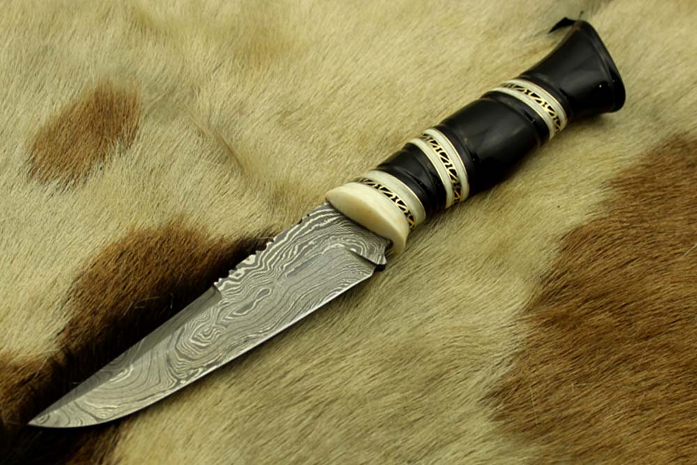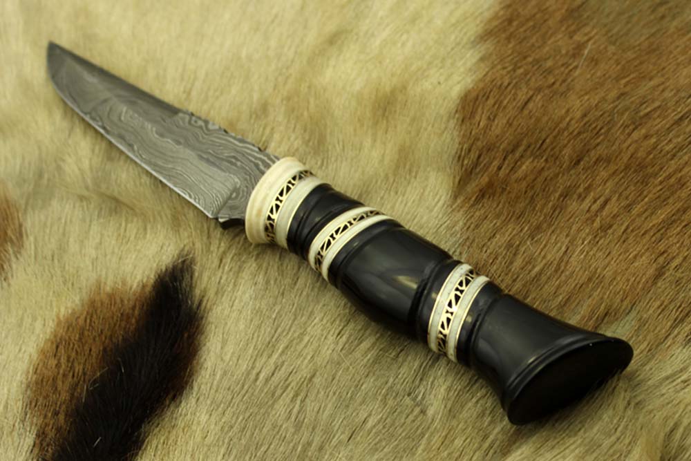 - Overall 10.5″ Long with 5″ long hand forged Damascus steel skinning knife