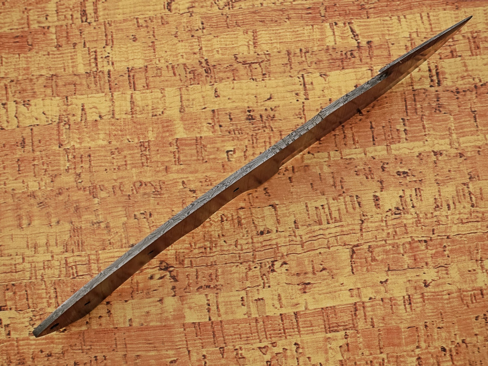 10 inches Long Hand Forged Trailing Point Gut Hook Skinning Knife Blade, Knife Making Supplies, Ladder Pattern Damascus Steel Blank Blade Knife with 3 Pin and a lace Hole, 5" long blade with 4.5 inches Cutting Edge
