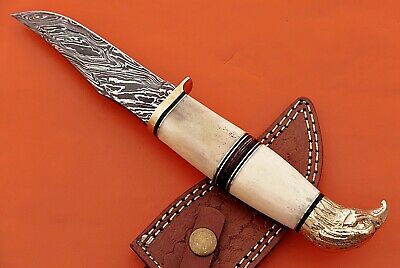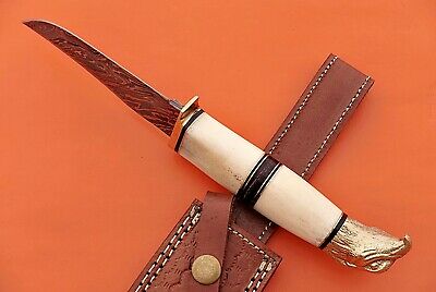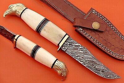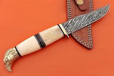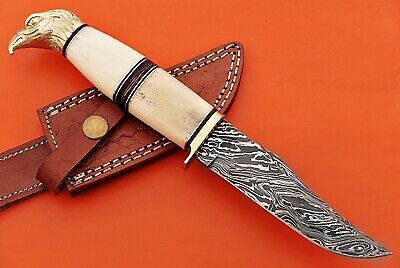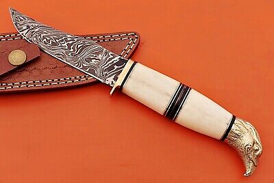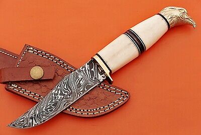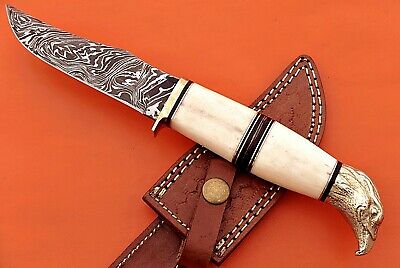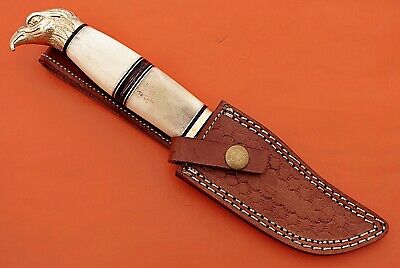 10" trailing point blade custom skinning knife with eagle pomel, Leather sheath