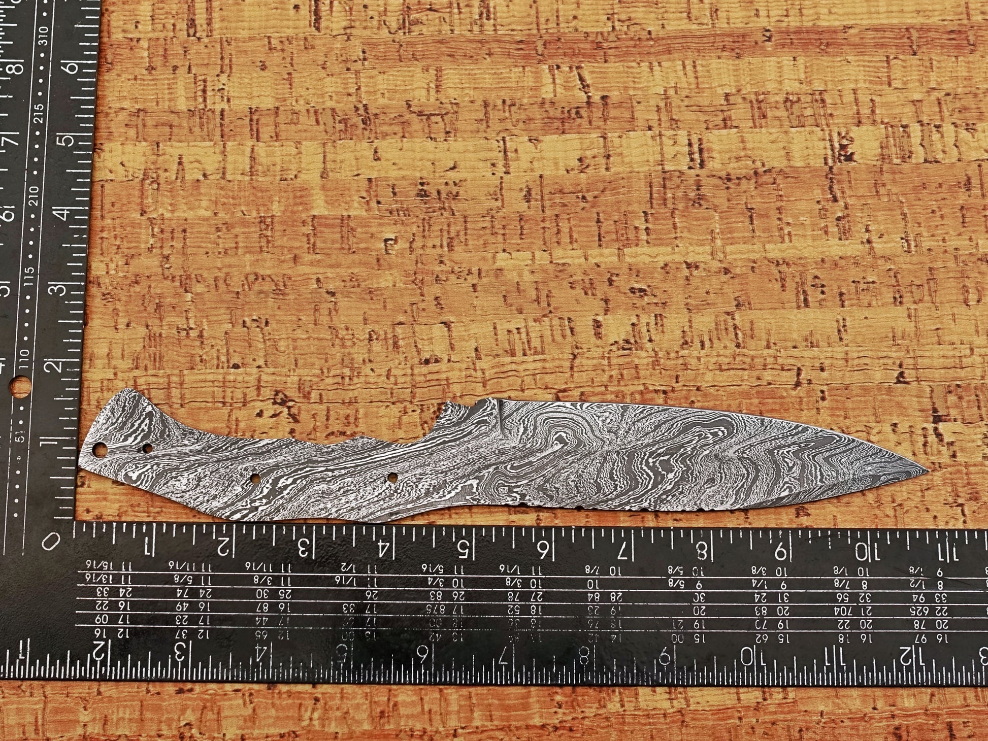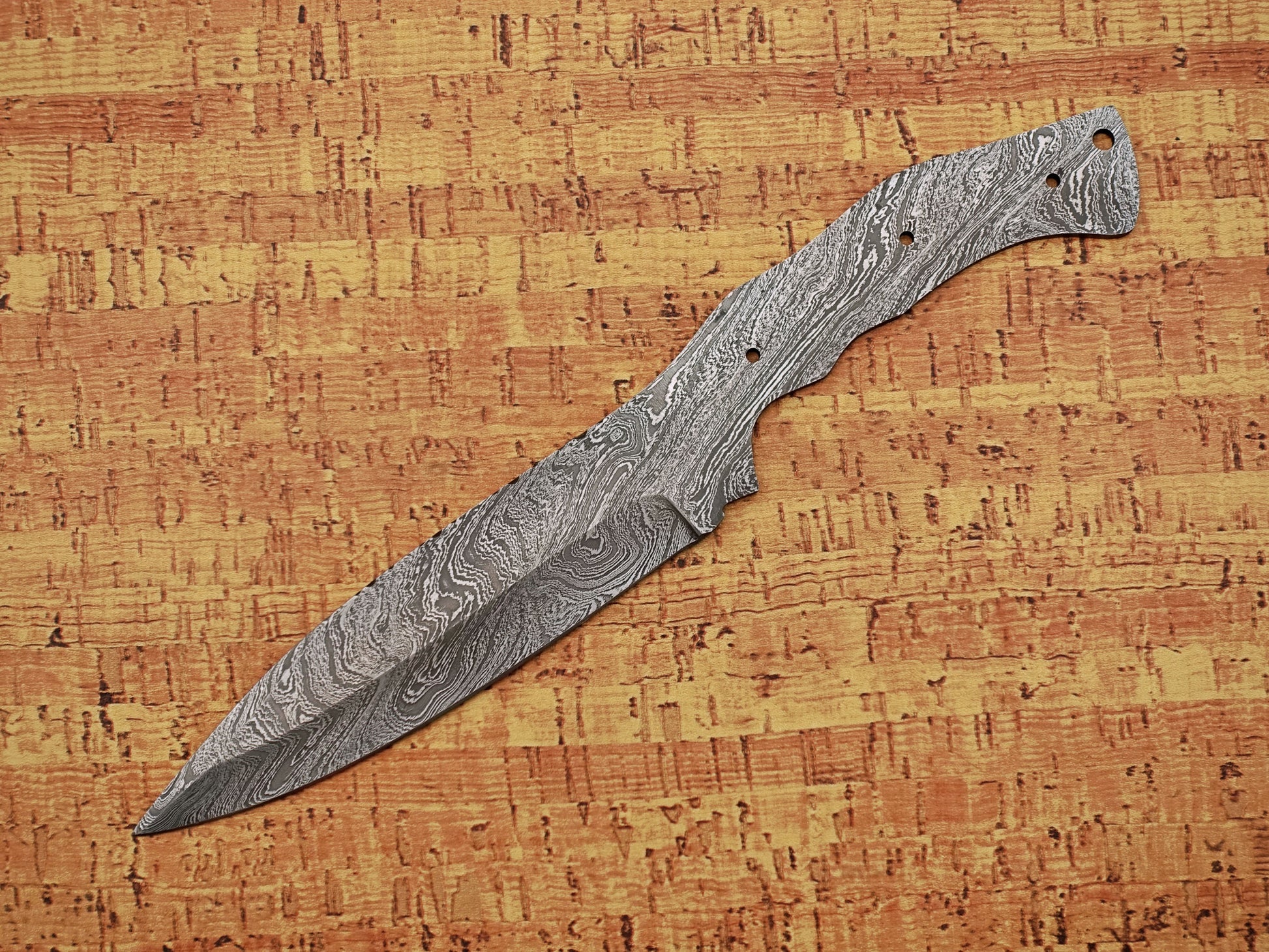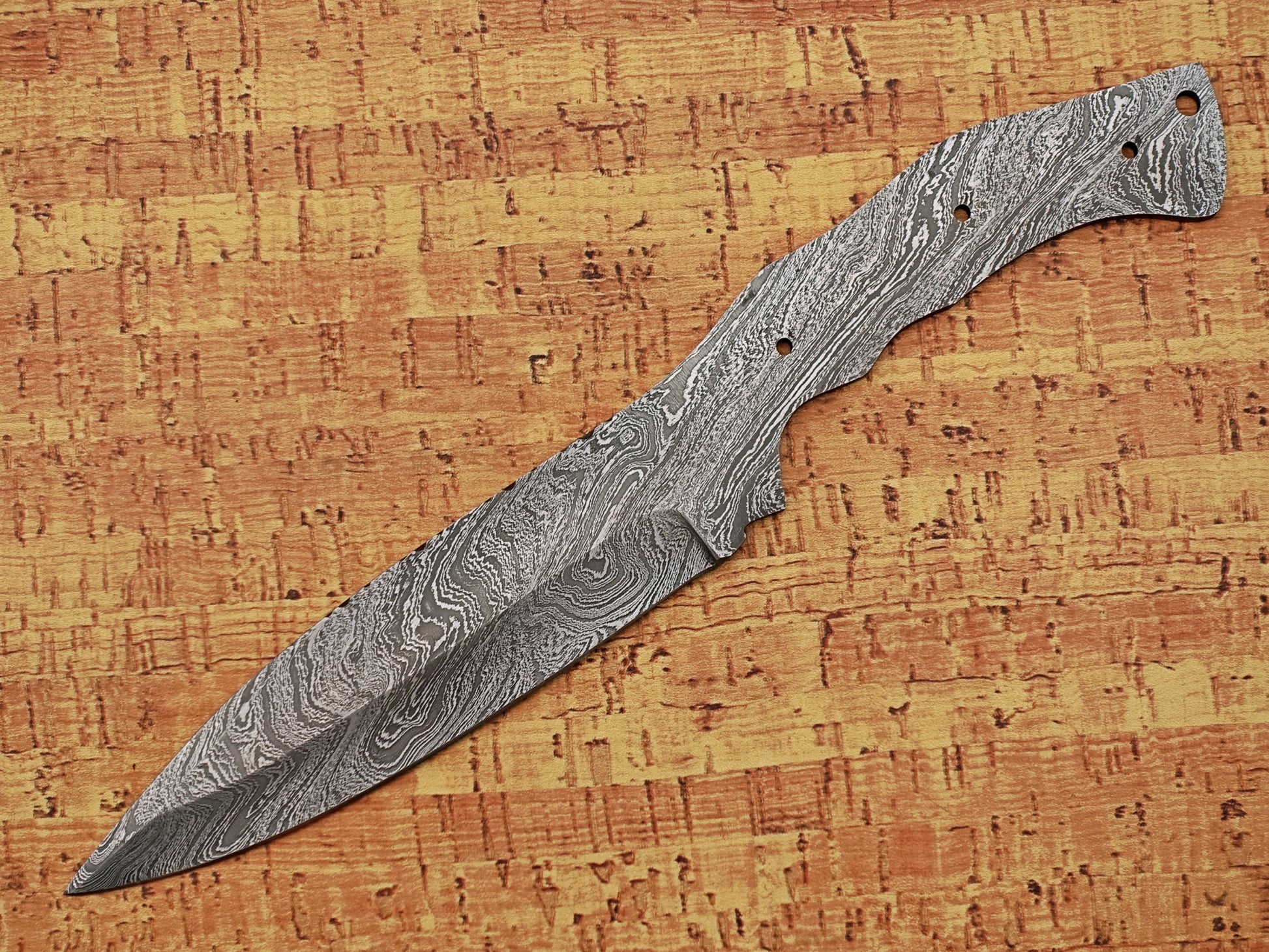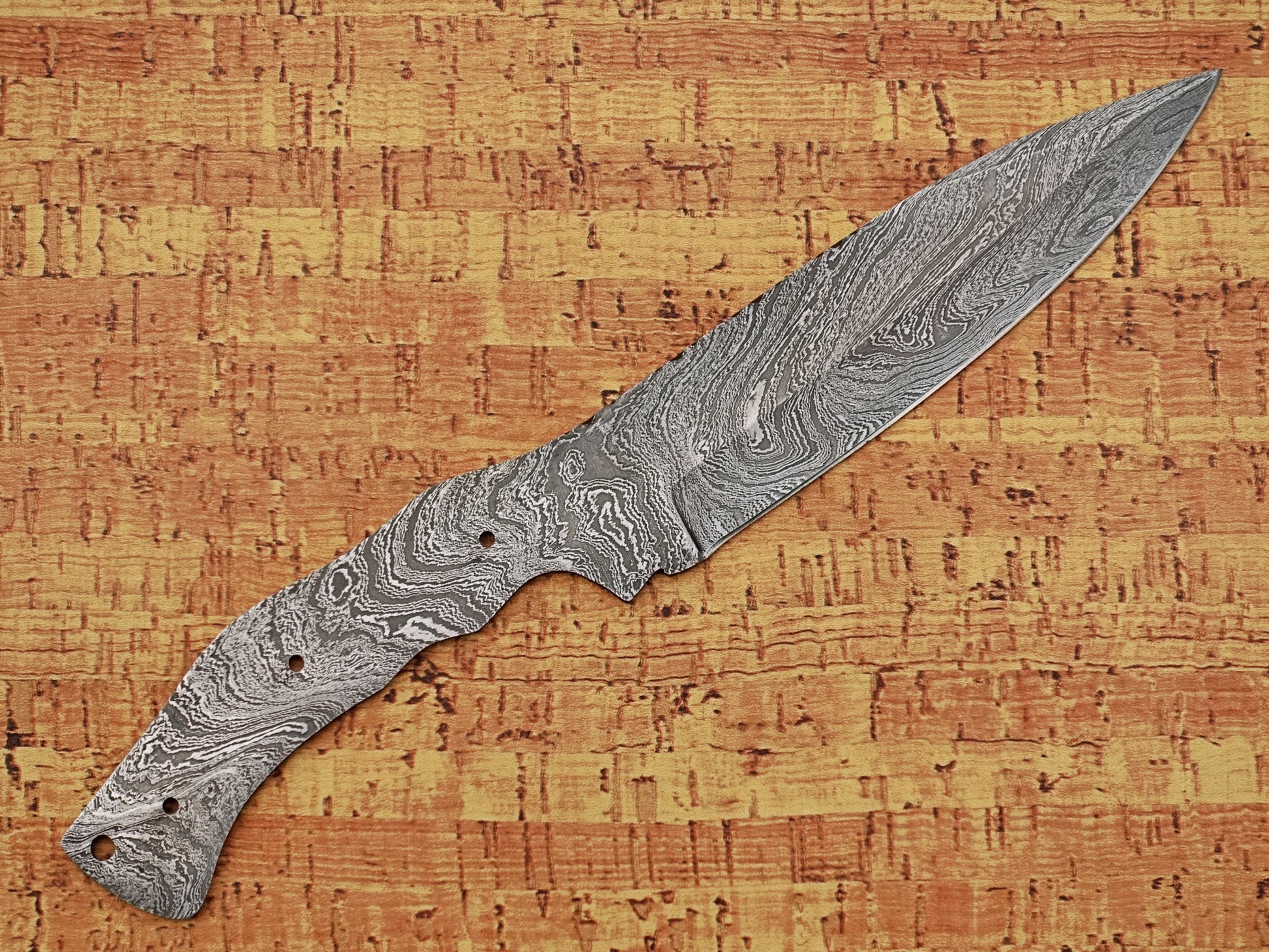 11 inches Long Drop Point Blank Blade, Hand Forged Twist Pattern Damascus Steel Hunting Knife Blade, 5" Scale Space Finger with 2 Fingers Grooves, 5.5" Sharp Cutting Edge