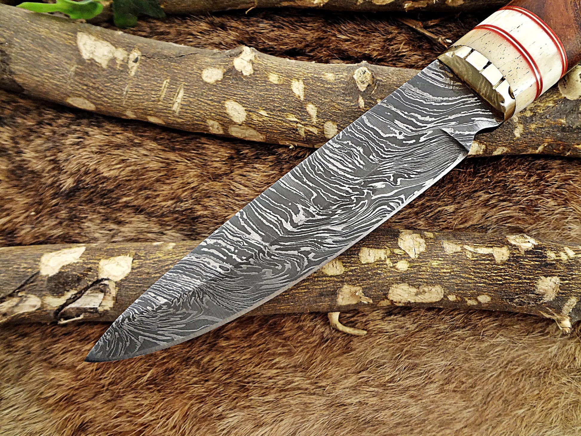 Custom made Damascus Steel Hunting Skinner Knife