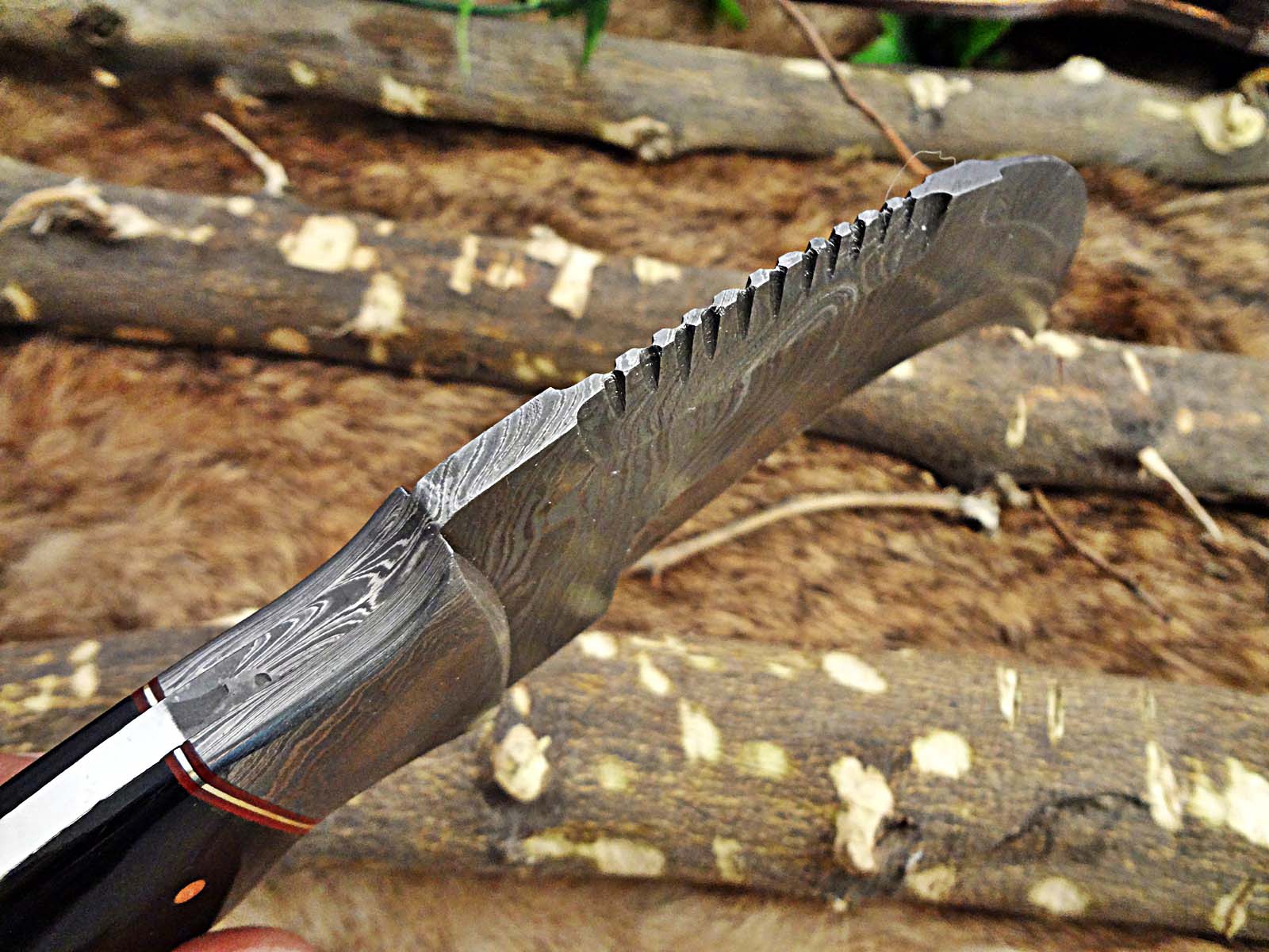 Approximately 5 mm Thick Twist pattern Damascus steel blade with upside serated