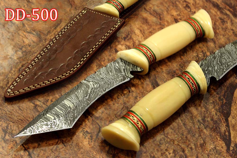 Damascus steel as well as 1095 high carbon steel knives are different than some other common steel knives, because of its high carbon content they can be rusted if not care properly. If you have seen rust accidentally then use WD40 to remove it Never store your knife for long time in leather sheath. Leather can absorb water which will rust the knife. Always clean the blade after using and apply oil or wax (please use cooking oil on Chef Knife) before you store it, for its longer life and durability.