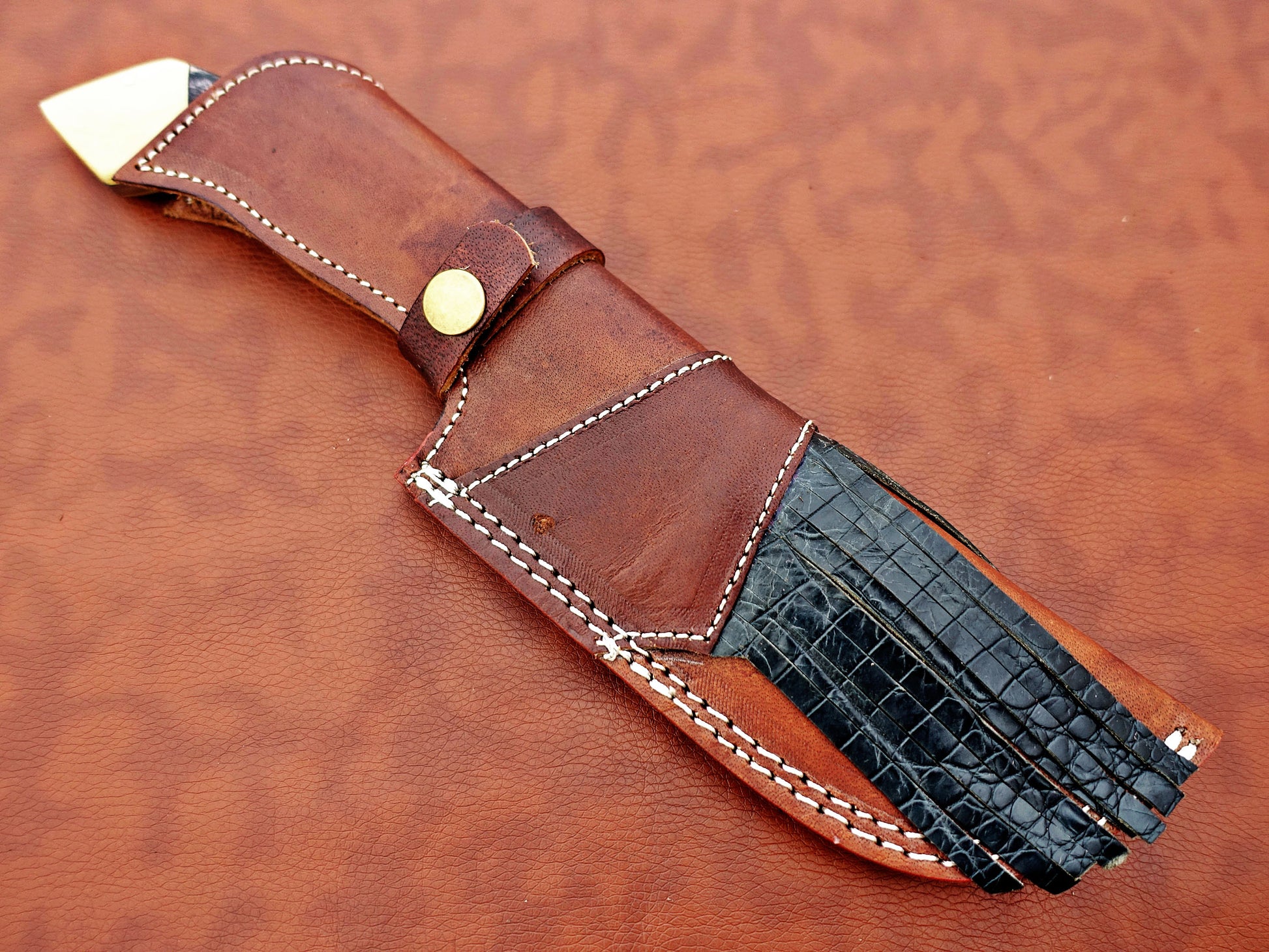 Comes with a fine quality extra thick exotic Cow hide utility leather sheath with belt inserting loop