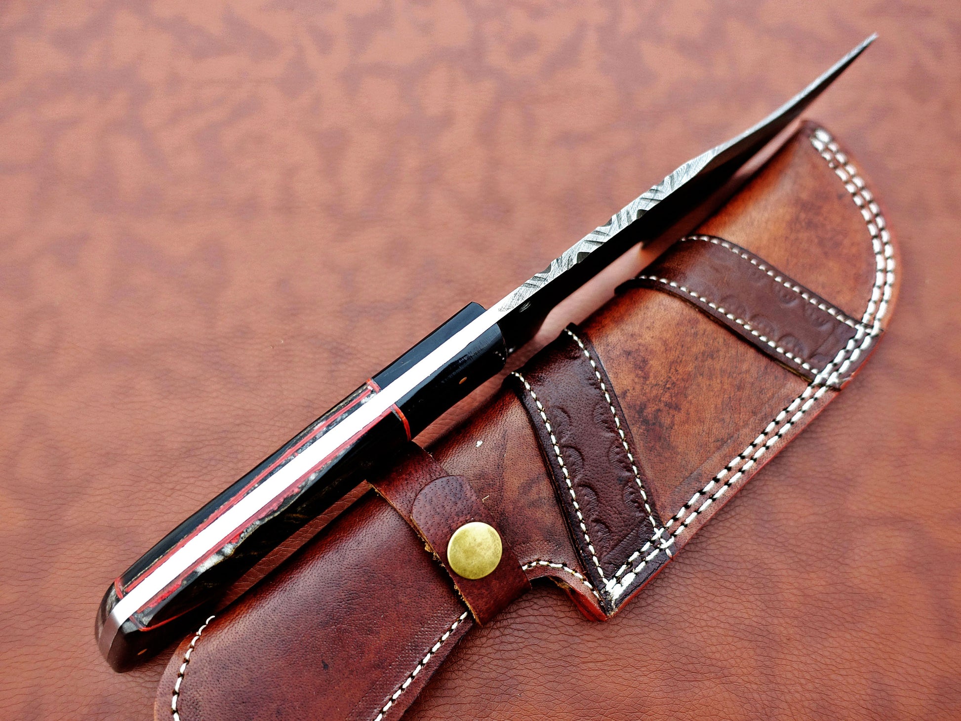 Comes with a fine quality extra thick exotic Cow hide utility leather sheath with belt inserting loop