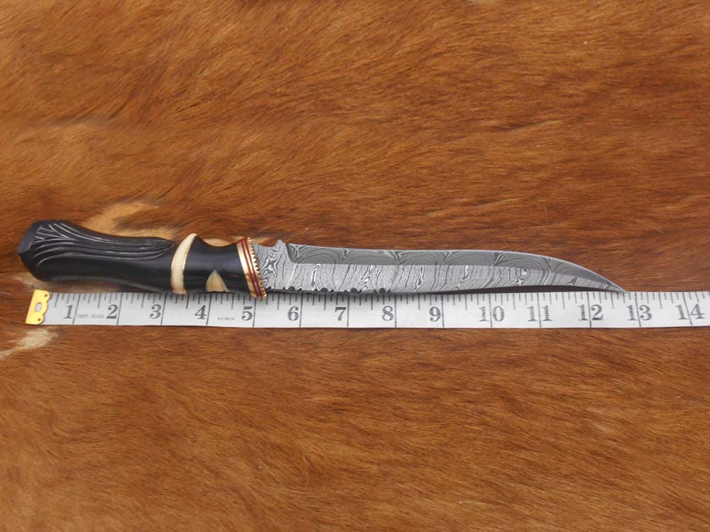Overall 13″ Long with 7.5″ long hand forged Damascus steel