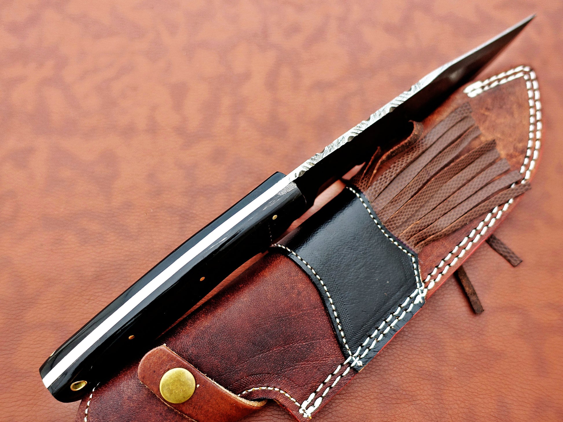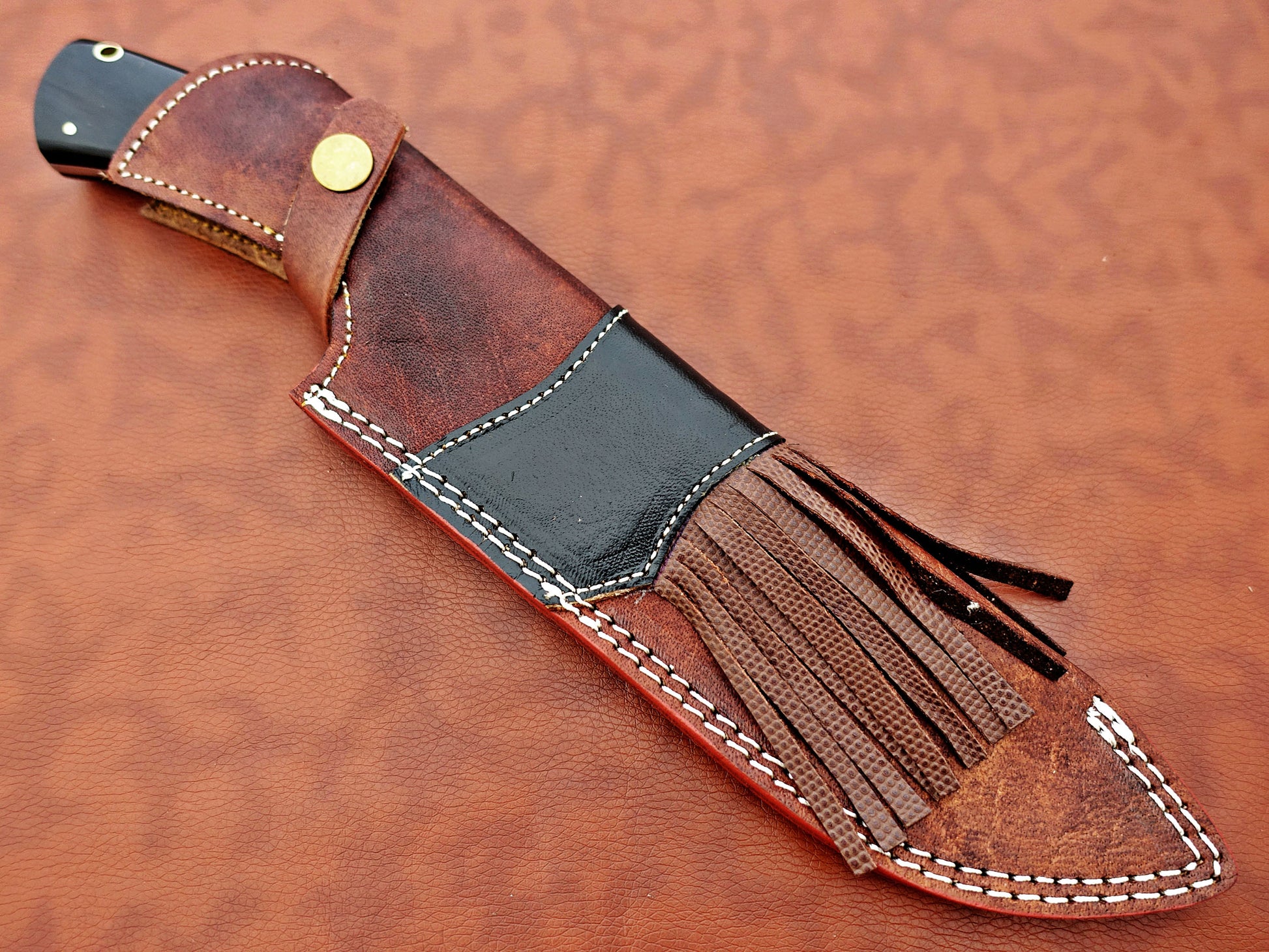 - Comes with a fine quality extra thick and robust leather sheath. The sheath has belt inserting loop and can be worn on belt.