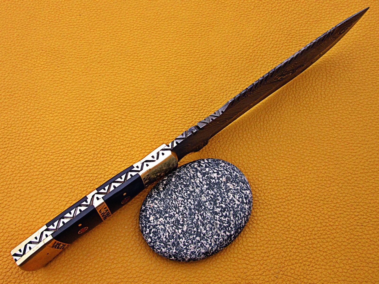 5″ long Natural Bull horn scale crafted with engraved brass spacer, bolster