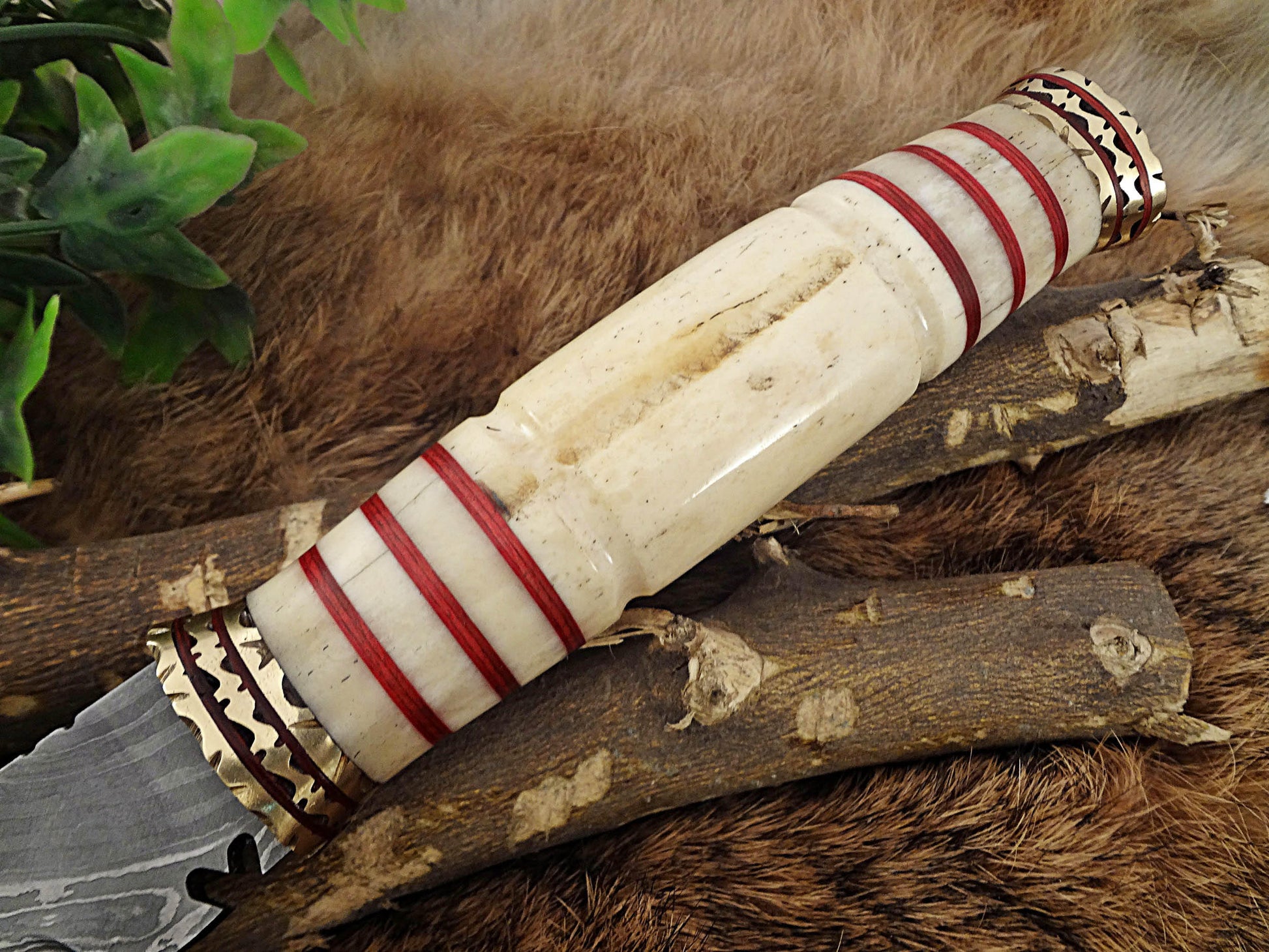 5.5 Inches exotic beautifully designed Camel bone scale with engraved brass spacing, cap and finger guard.