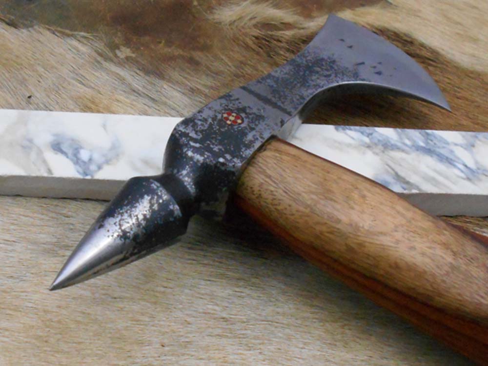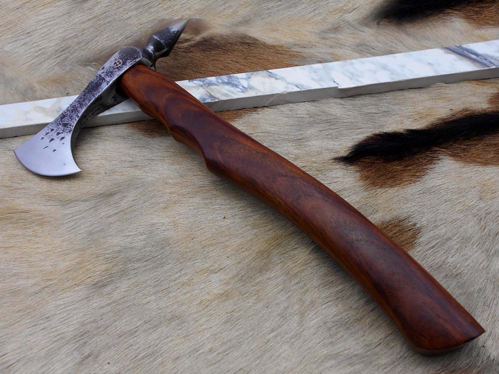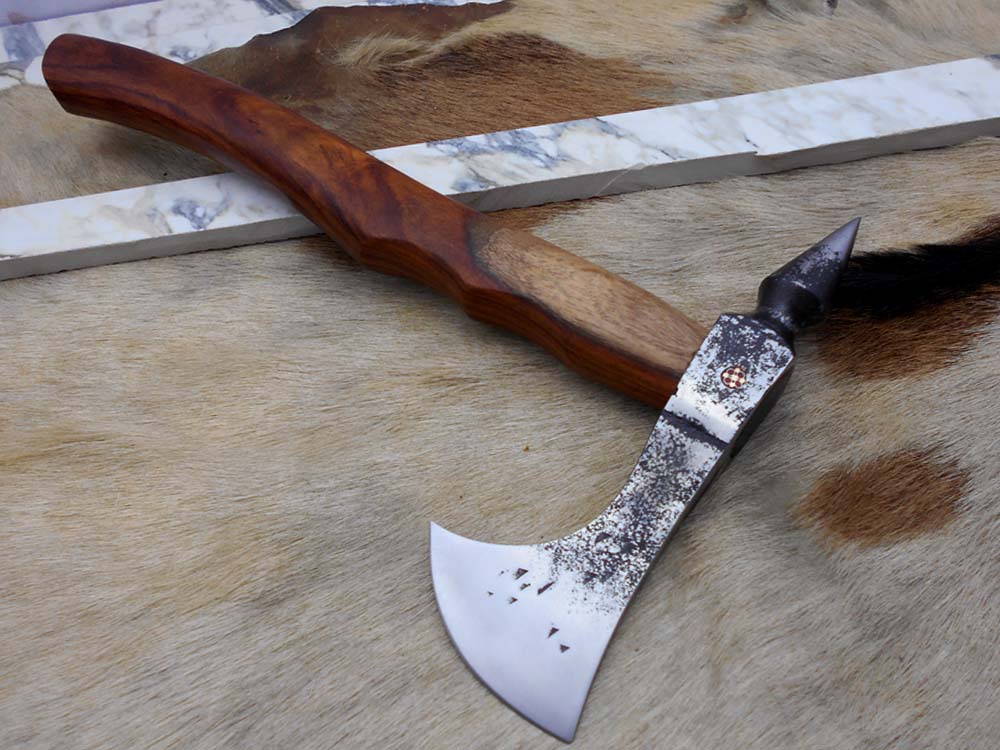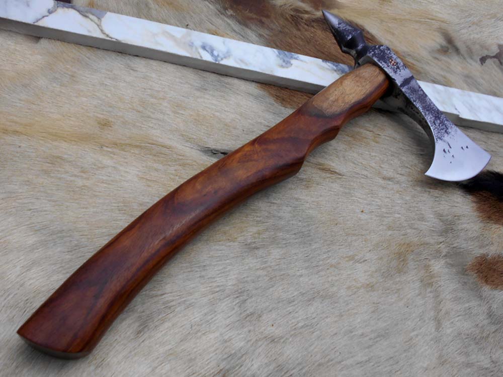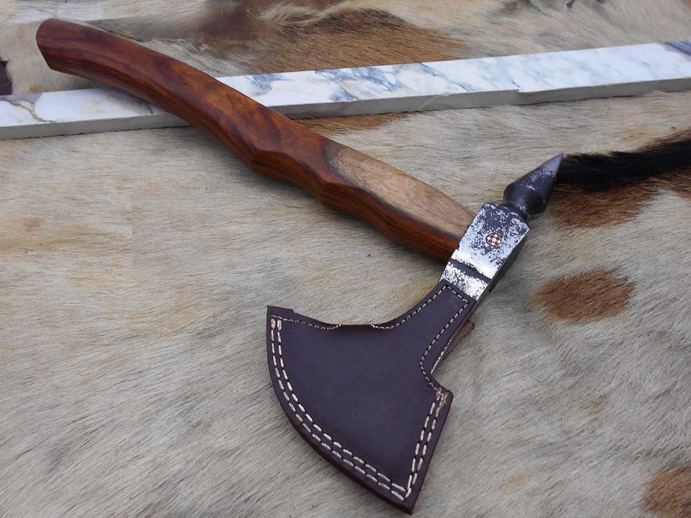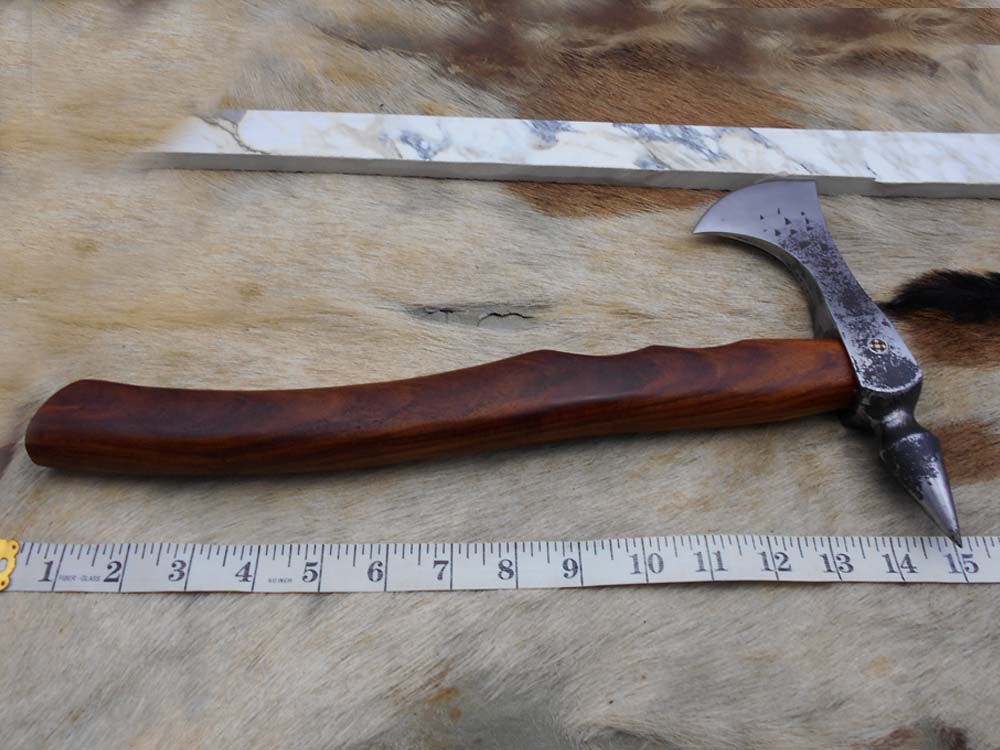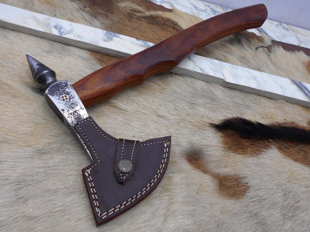 15" long Voyager Axe, High carbon steel Axe, Walnut wood scale, Cow sheath