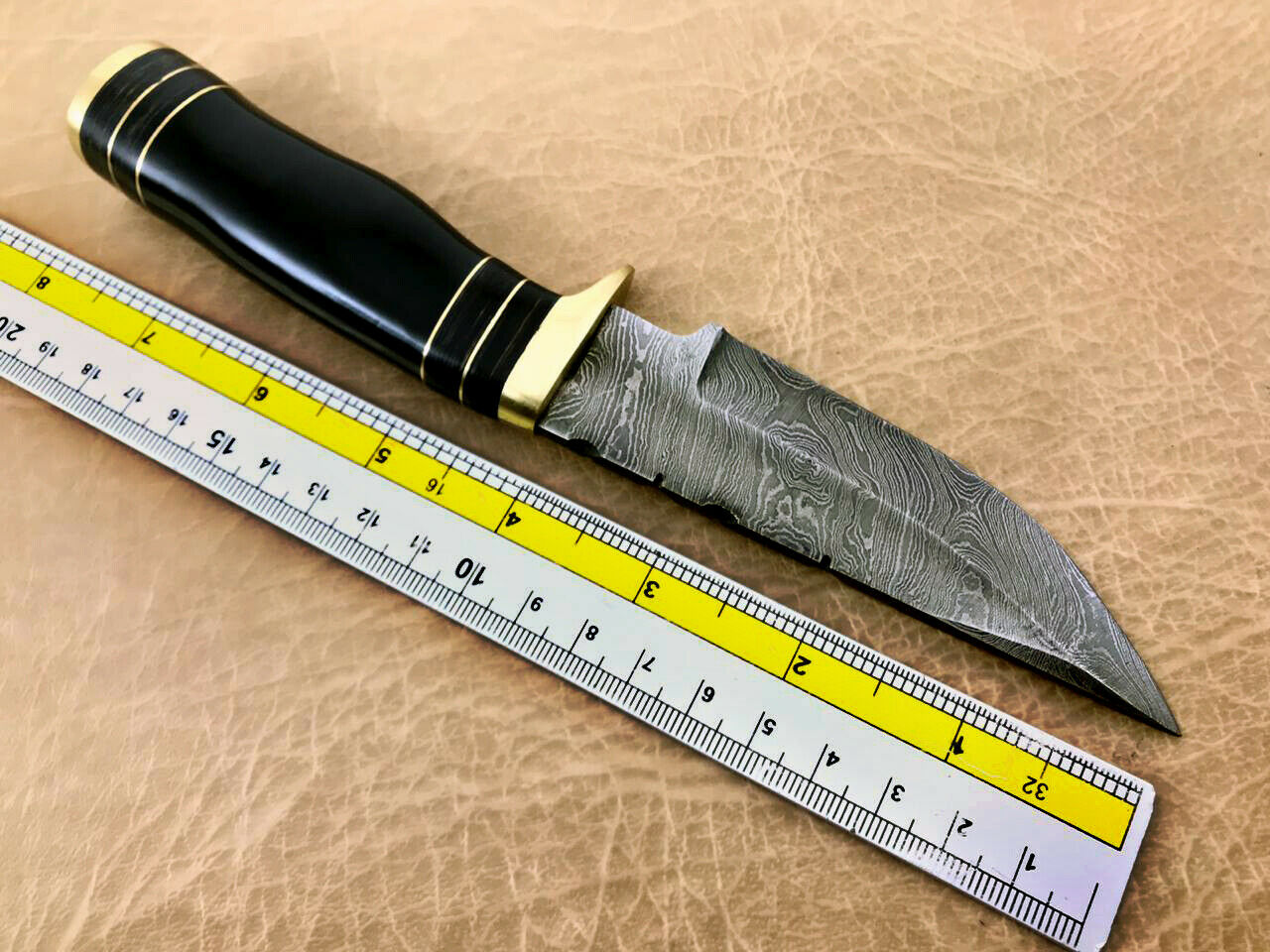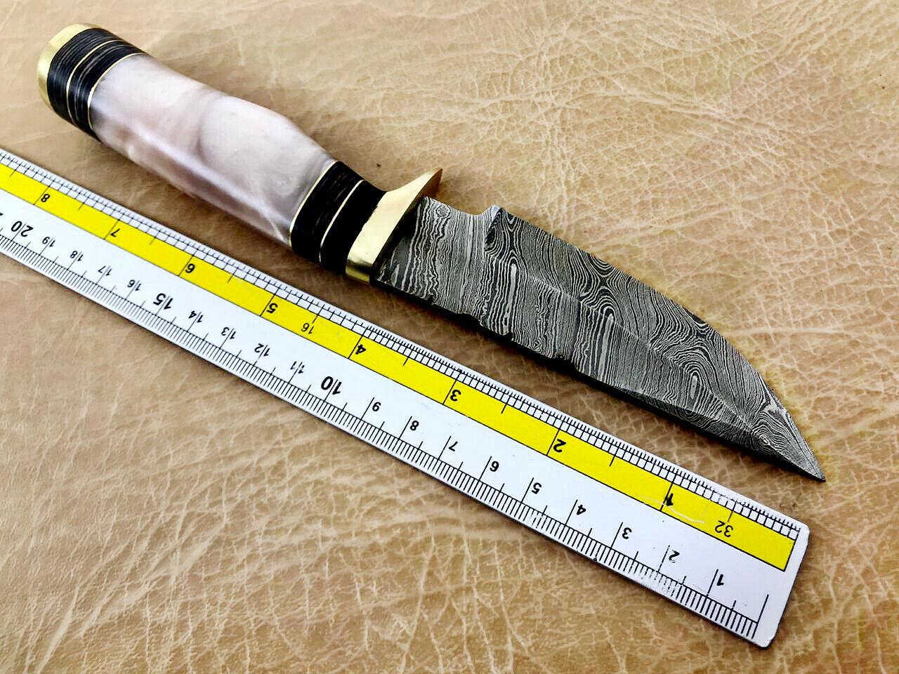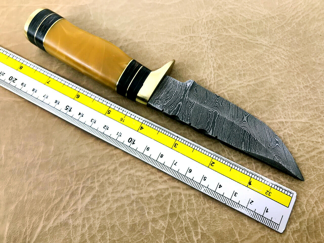 Never store your knife for long time in leather sheath. Leather can absorb water which will rust the knife. Always clean the blade after using and apply oil or wax (please use cooking oil on Chef Knife) before you store it, for its longer life and durability - Damascus steel Camel Bone