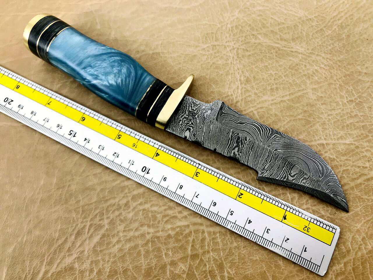 15 pieces Damascus steel unshrinkable Raisen Round scale skinning knives set with Leather sheath. Overall 125 inches long Damascus steel blade knives