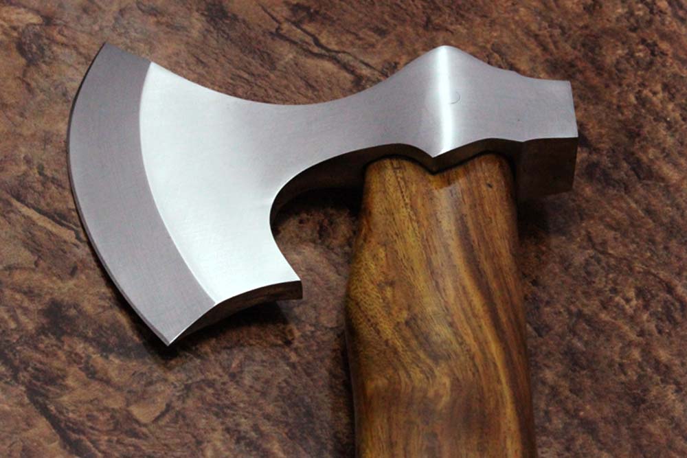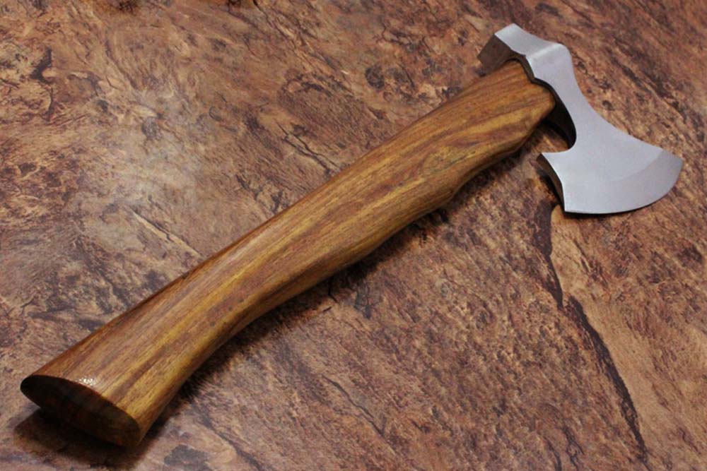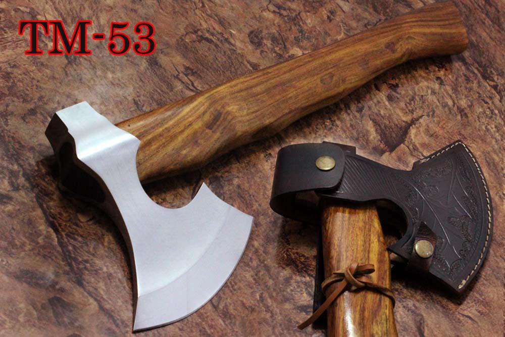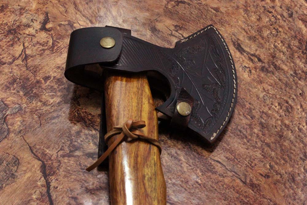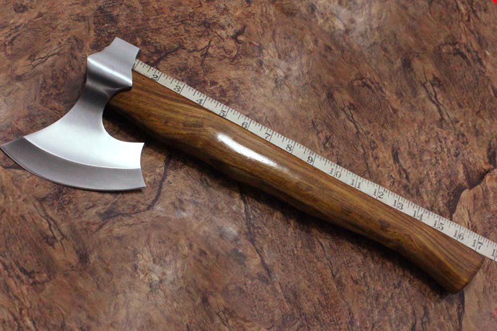 17 Inches long Hand Forg High polished steel Voyager Axe with Rose wood round handle, thick PVC sheath available