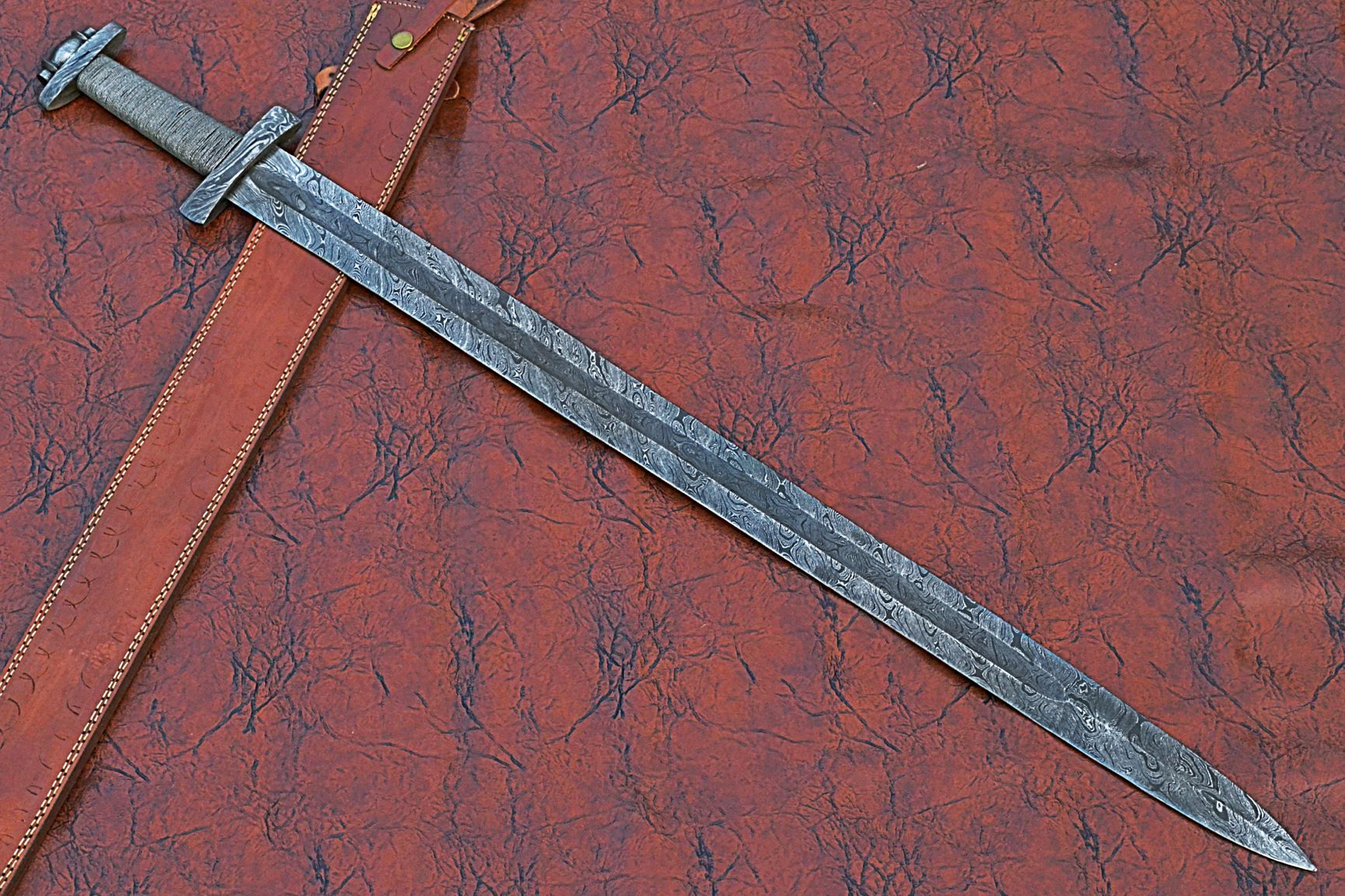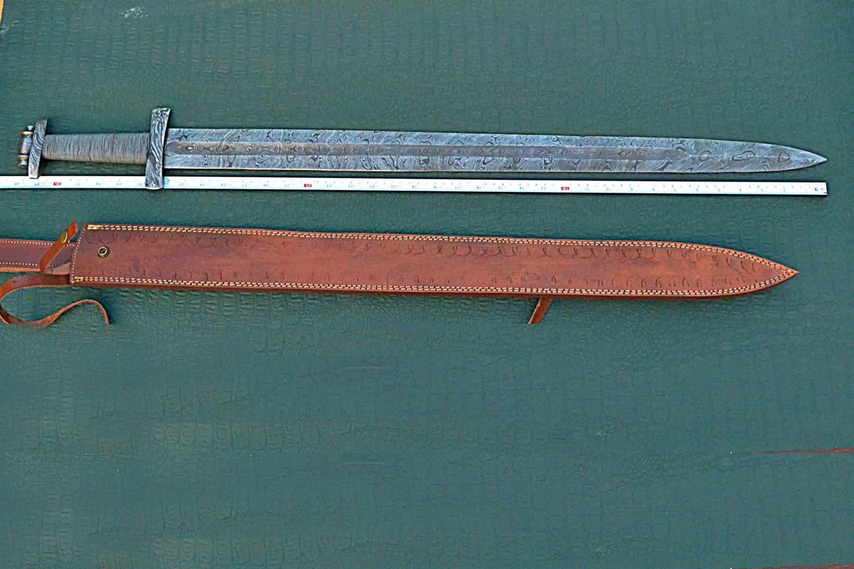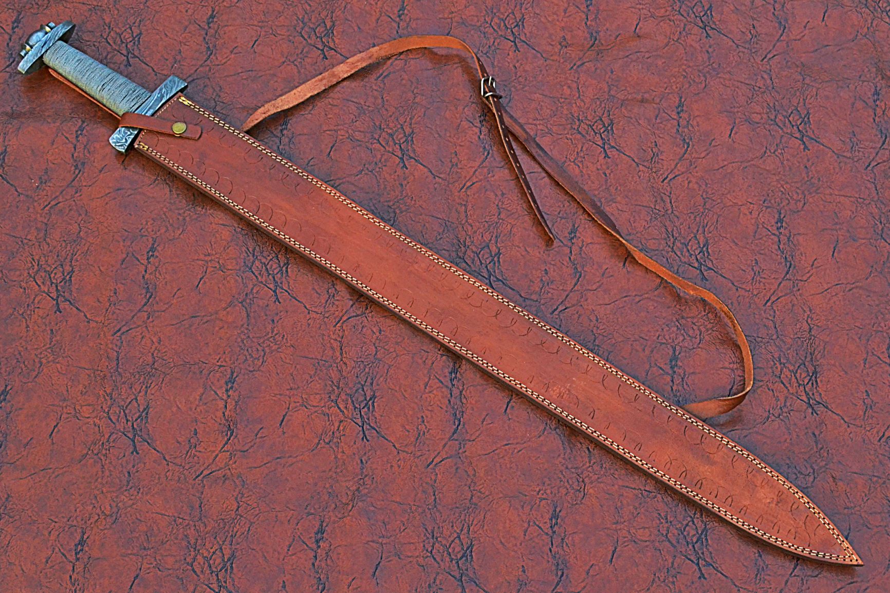 31" long Hand forged Damascus steel double edge blade with 25" Fuller and 5" central ridge