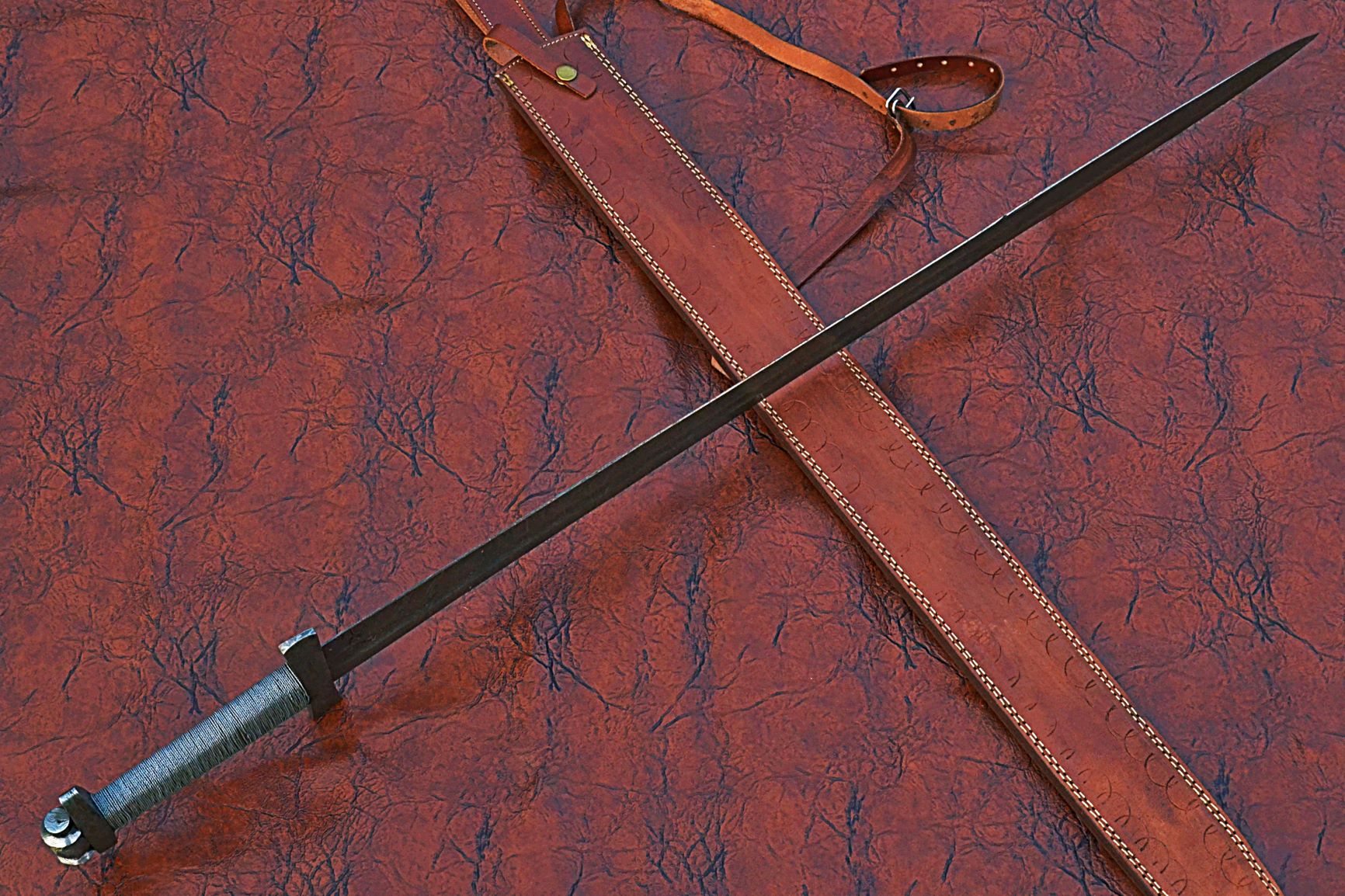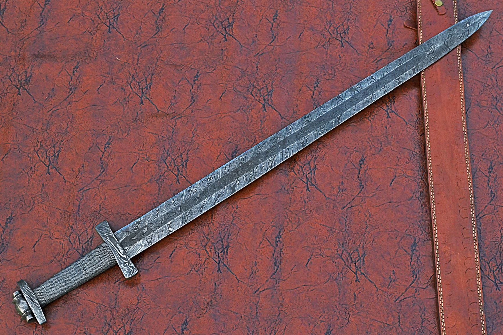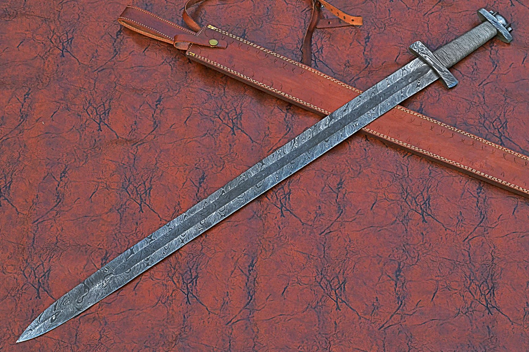 31" long Hand forged Damascus steel double edge blade with 25" Fuller and 5" central ridge