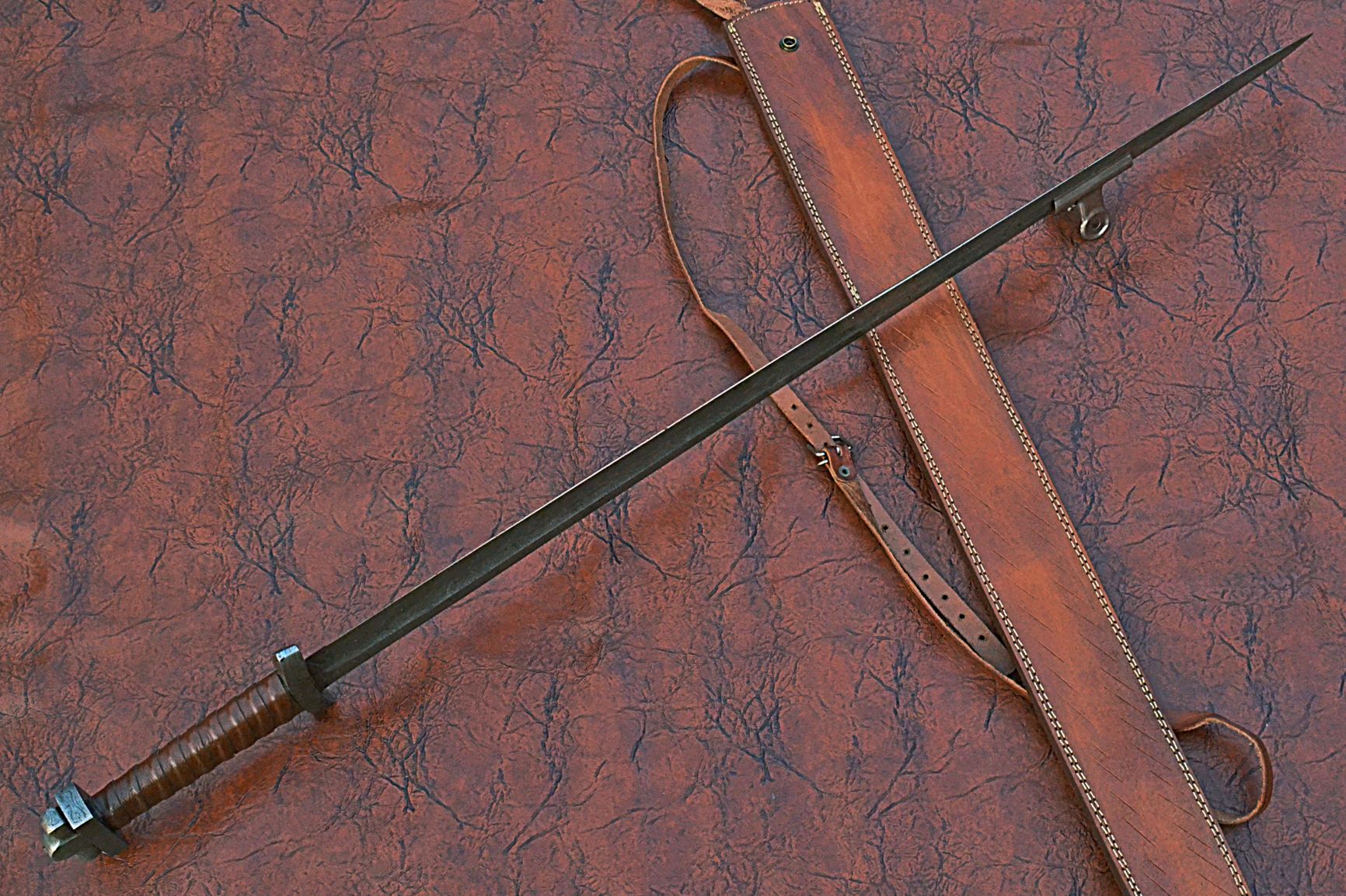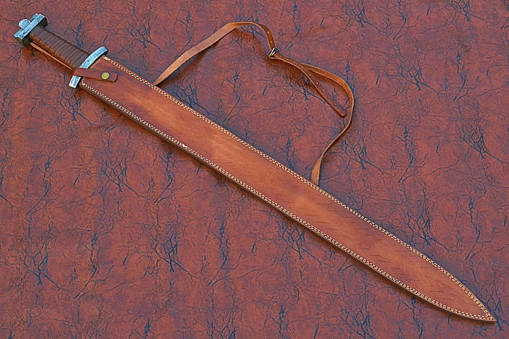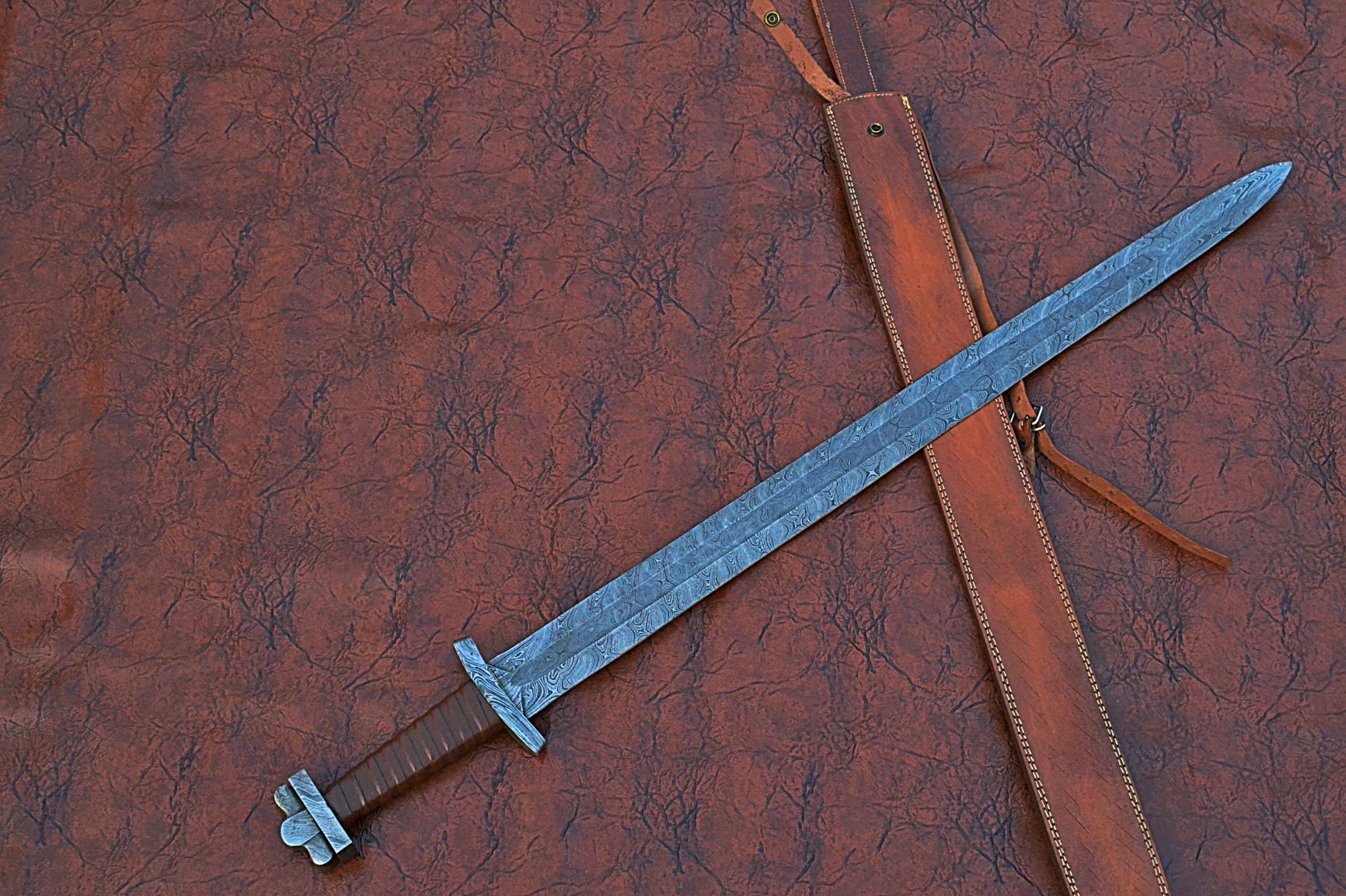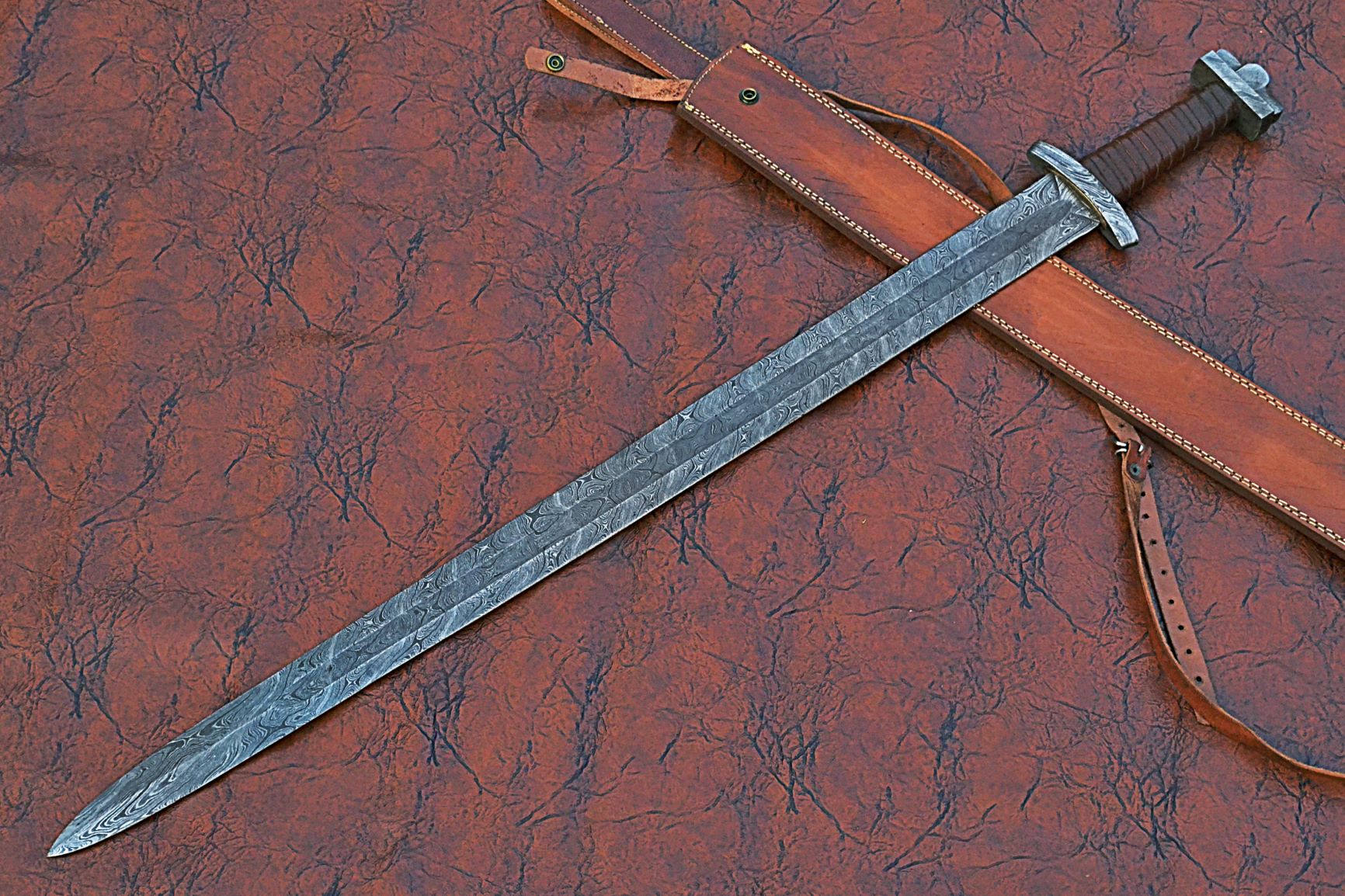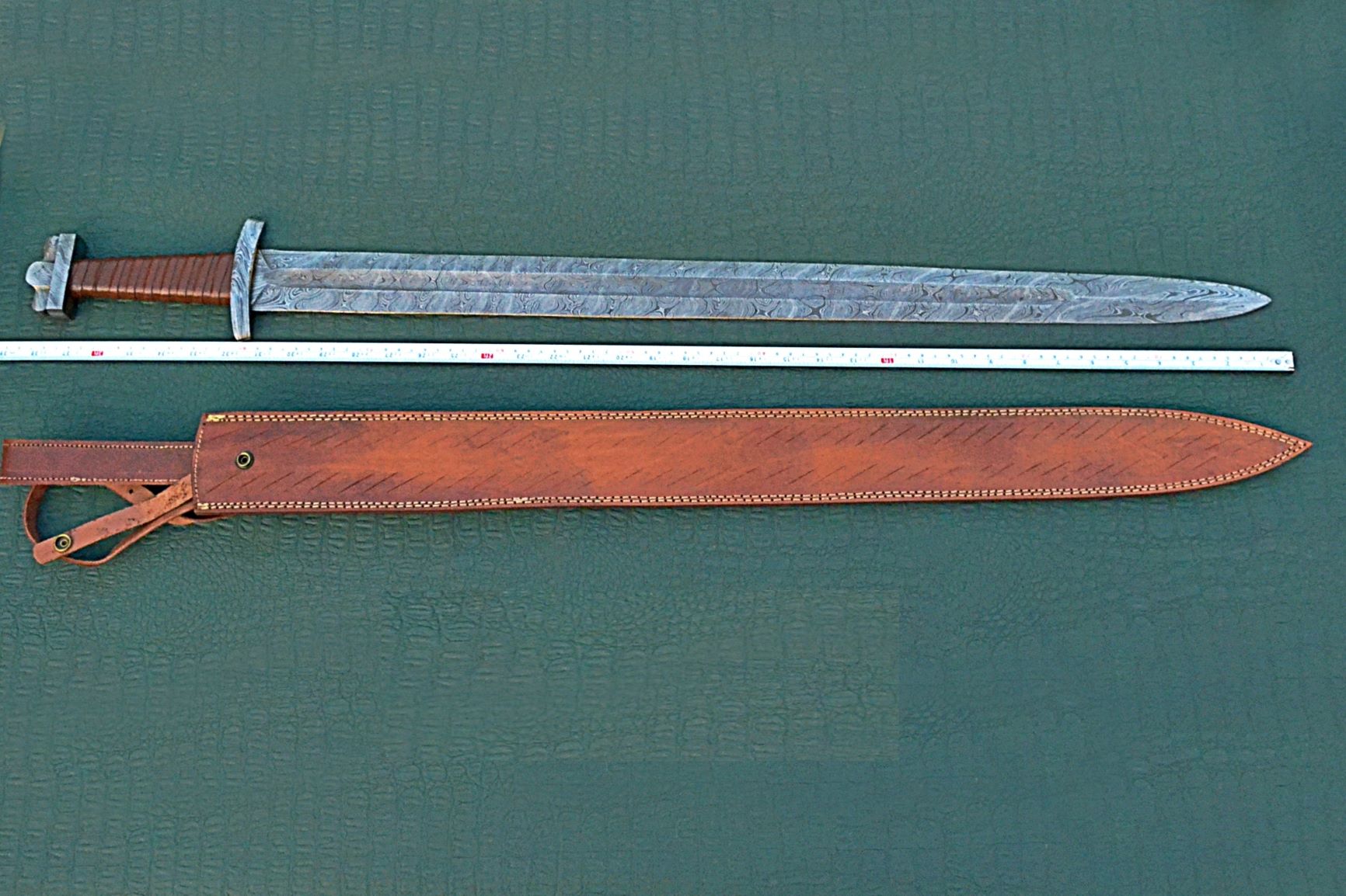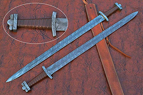 39 inches Long Green Destiny Sword, 31" Long Hand Forged Damascus Steel Double Edge Blade, Solid Damascus Steel Cross hilt Forward and Pommel, Leather Scabbard with Shoulder Stripe