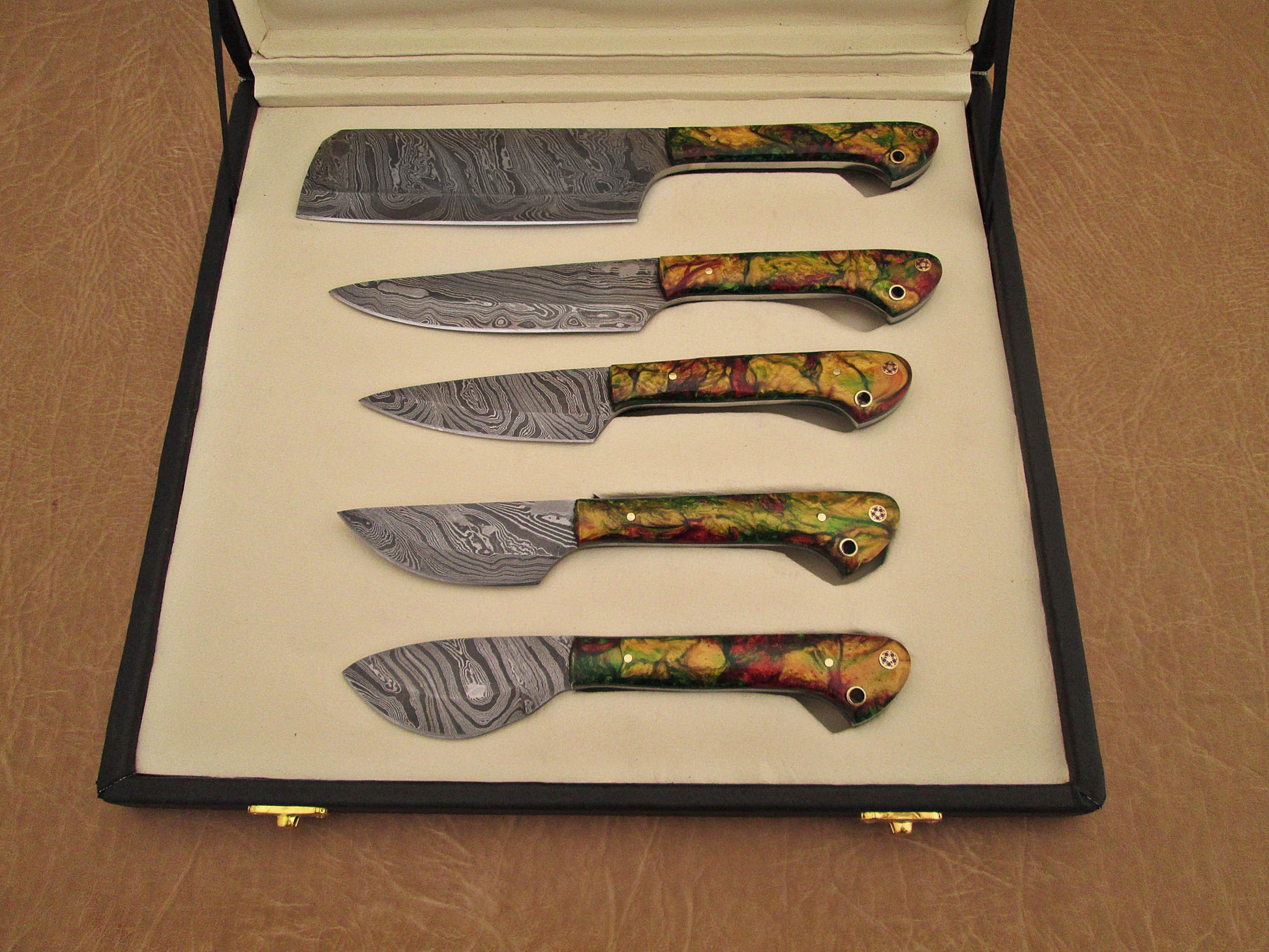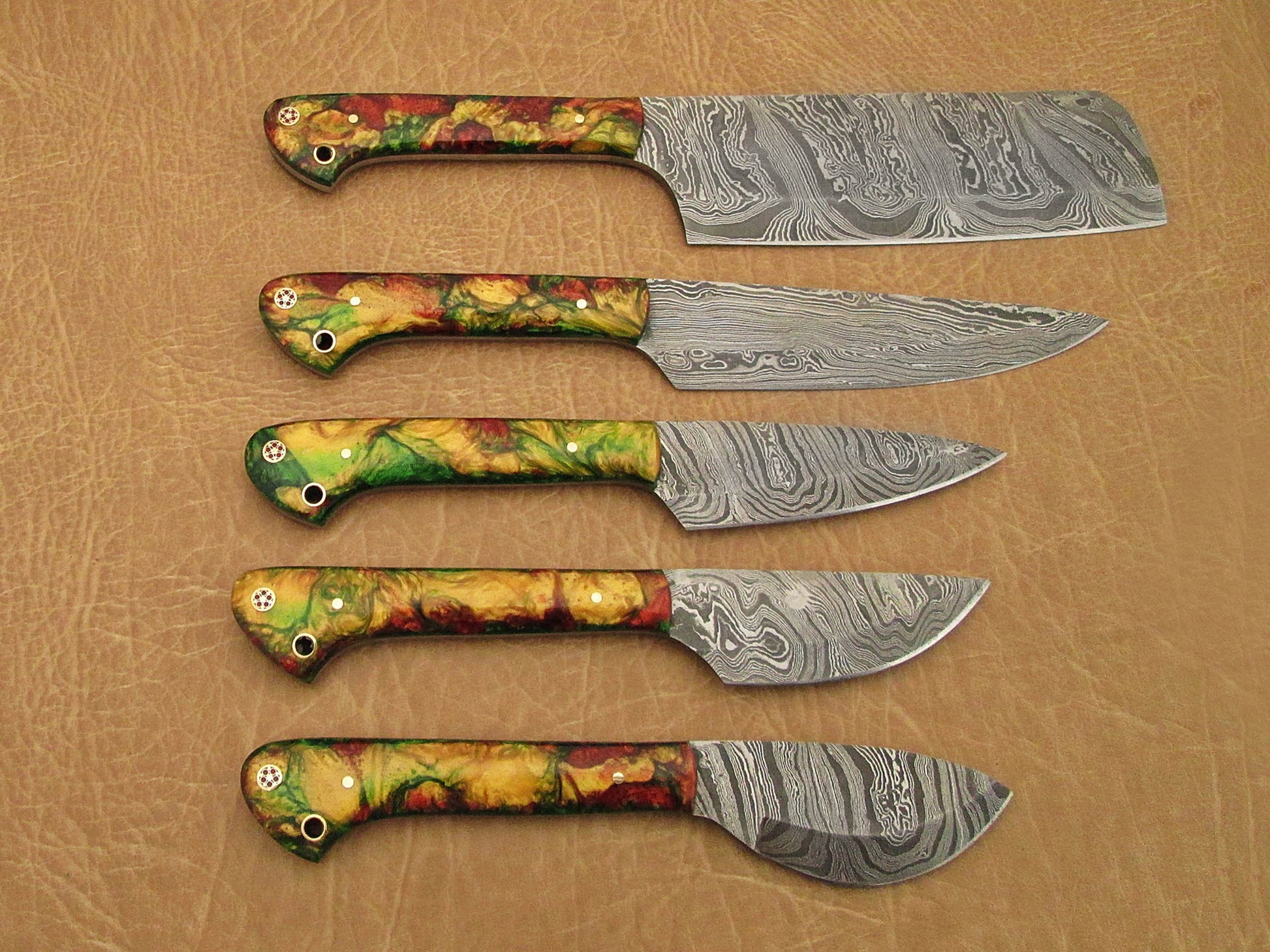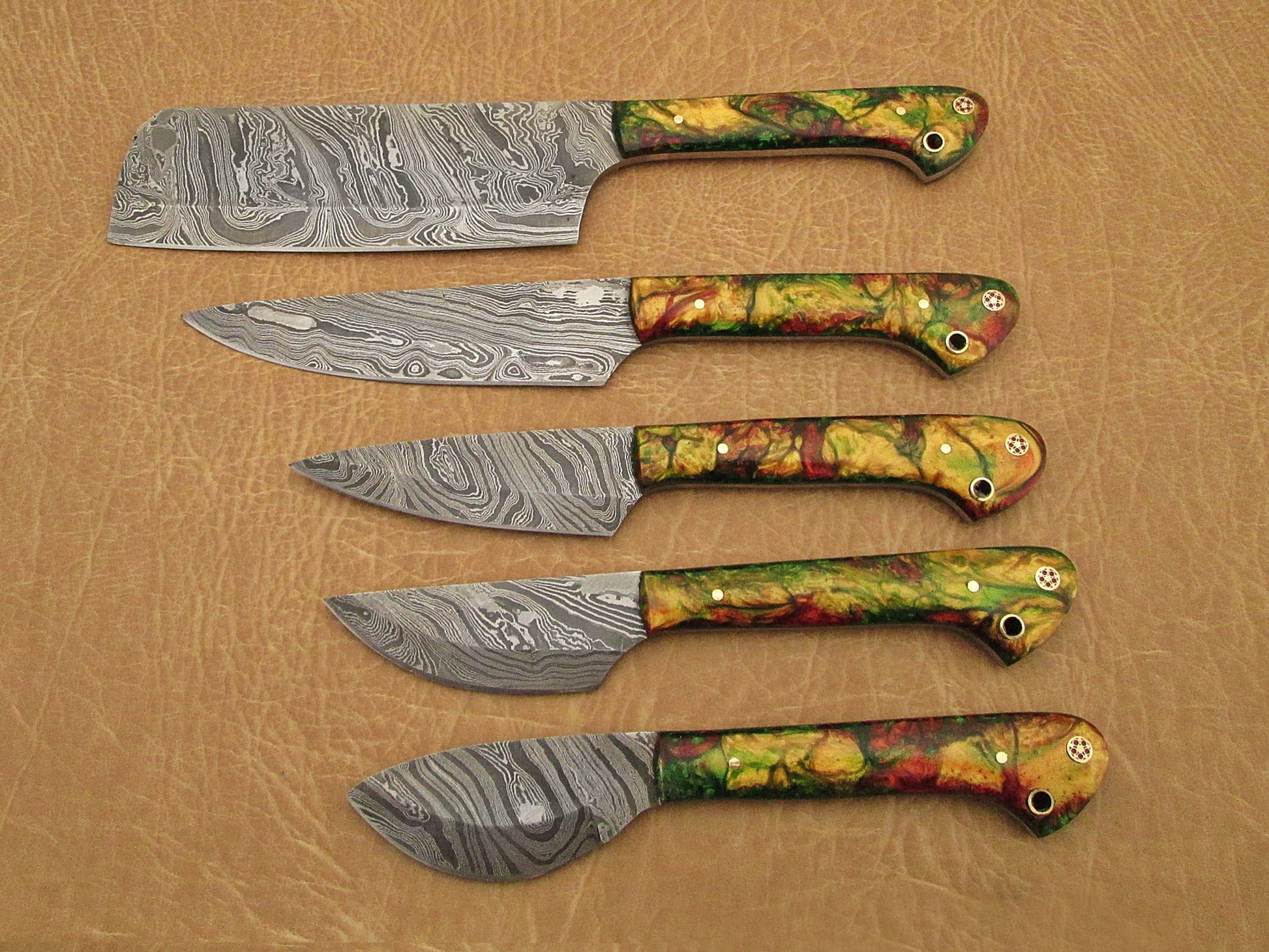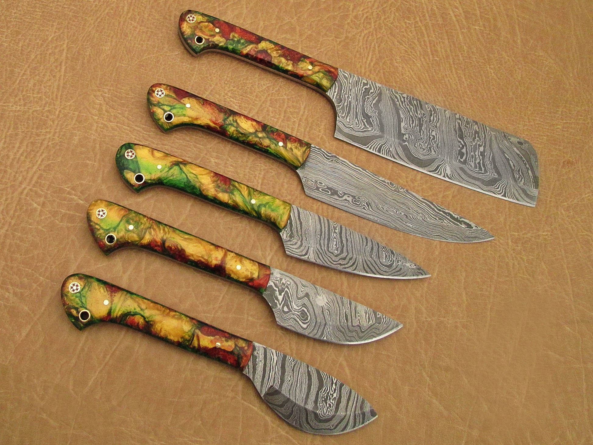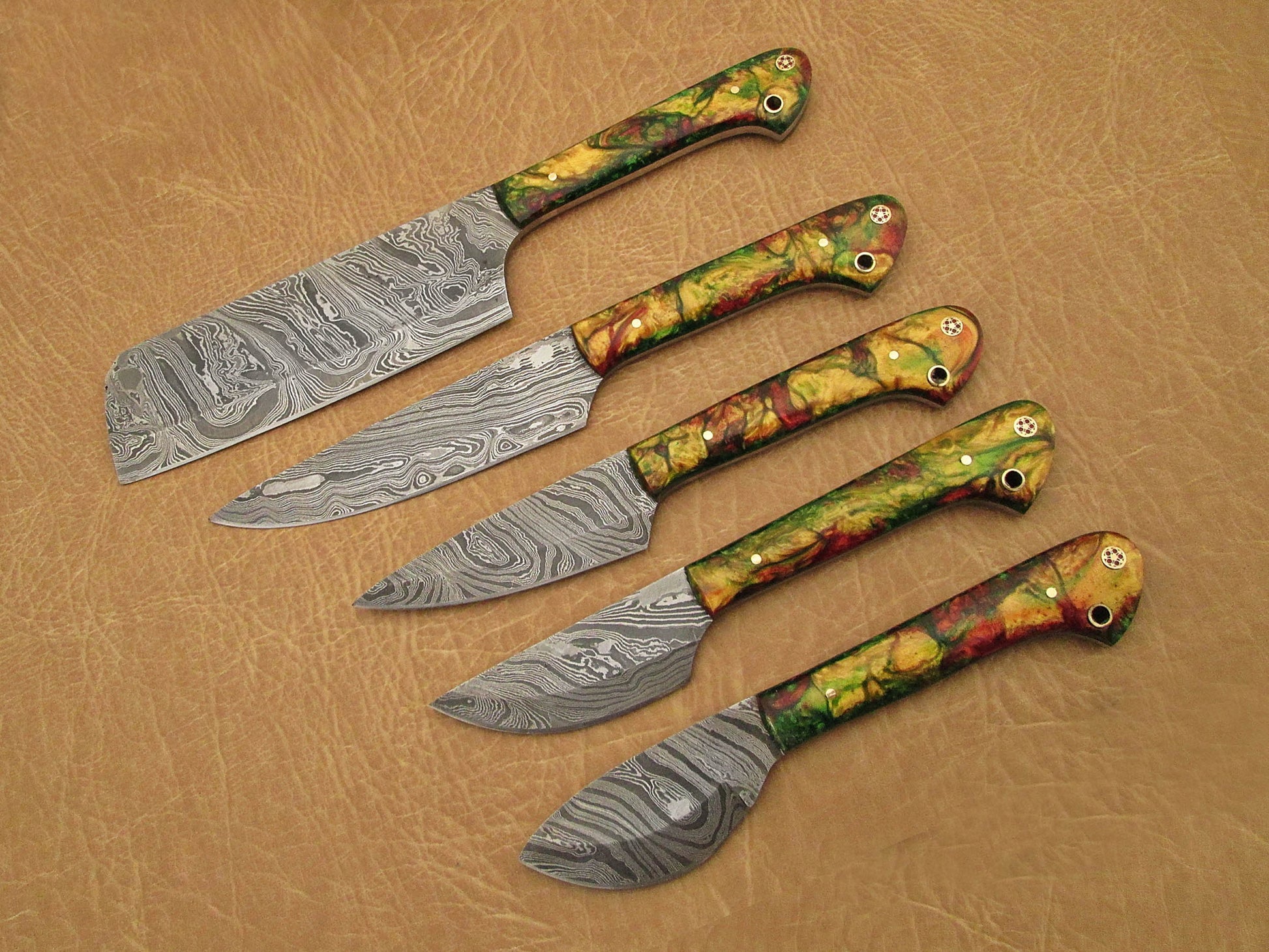 5 Pieces Damascus steel kitchen knife set includes (10.6+9.6+9.0+8.0+7.6)" knives, Camouflage scale, Comes with gift box