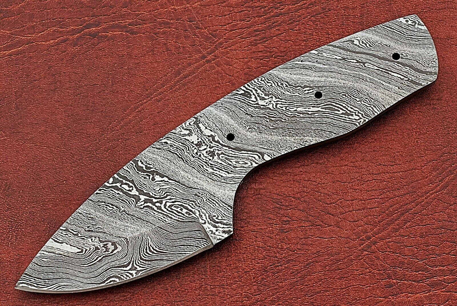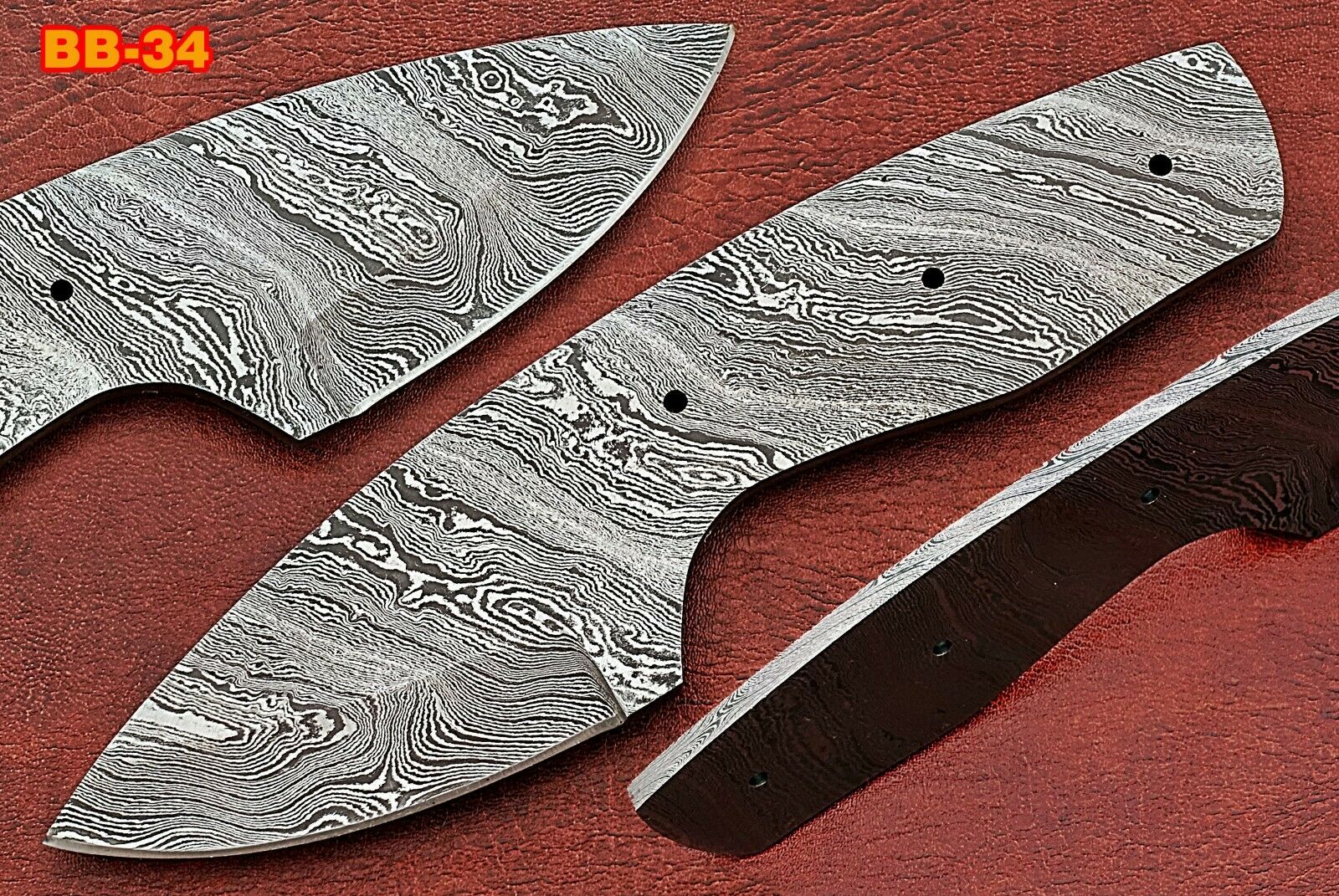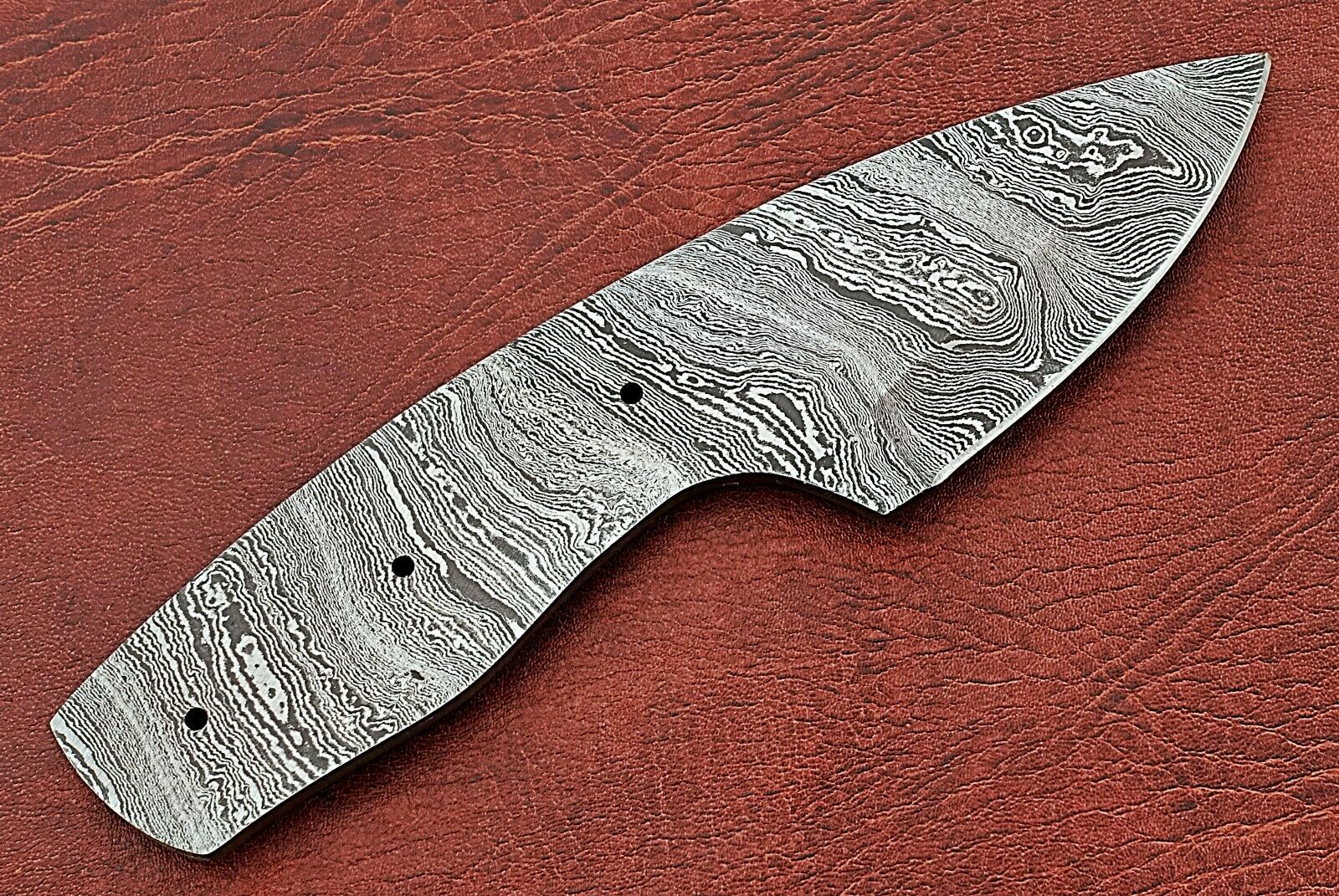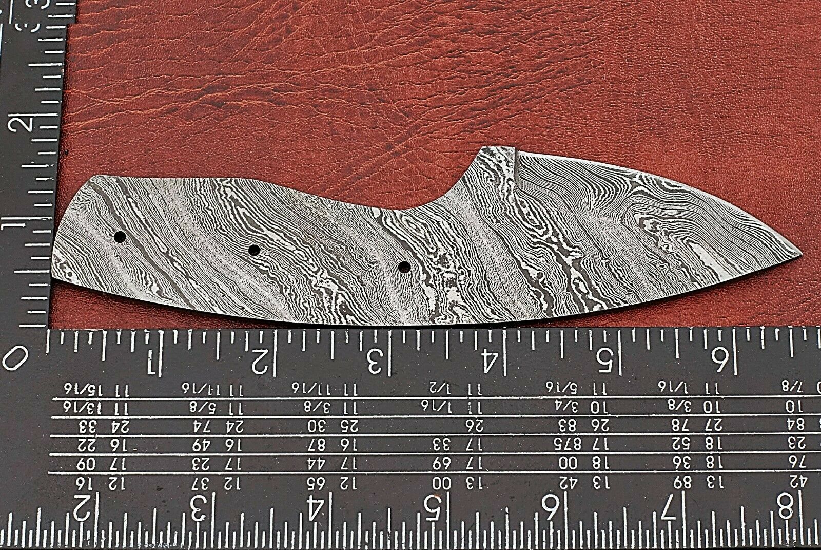 6.5" Damascus steel Spear point blank blade pocket knife with 3" cutting edge, 3.5" scale with 3 Pin holes