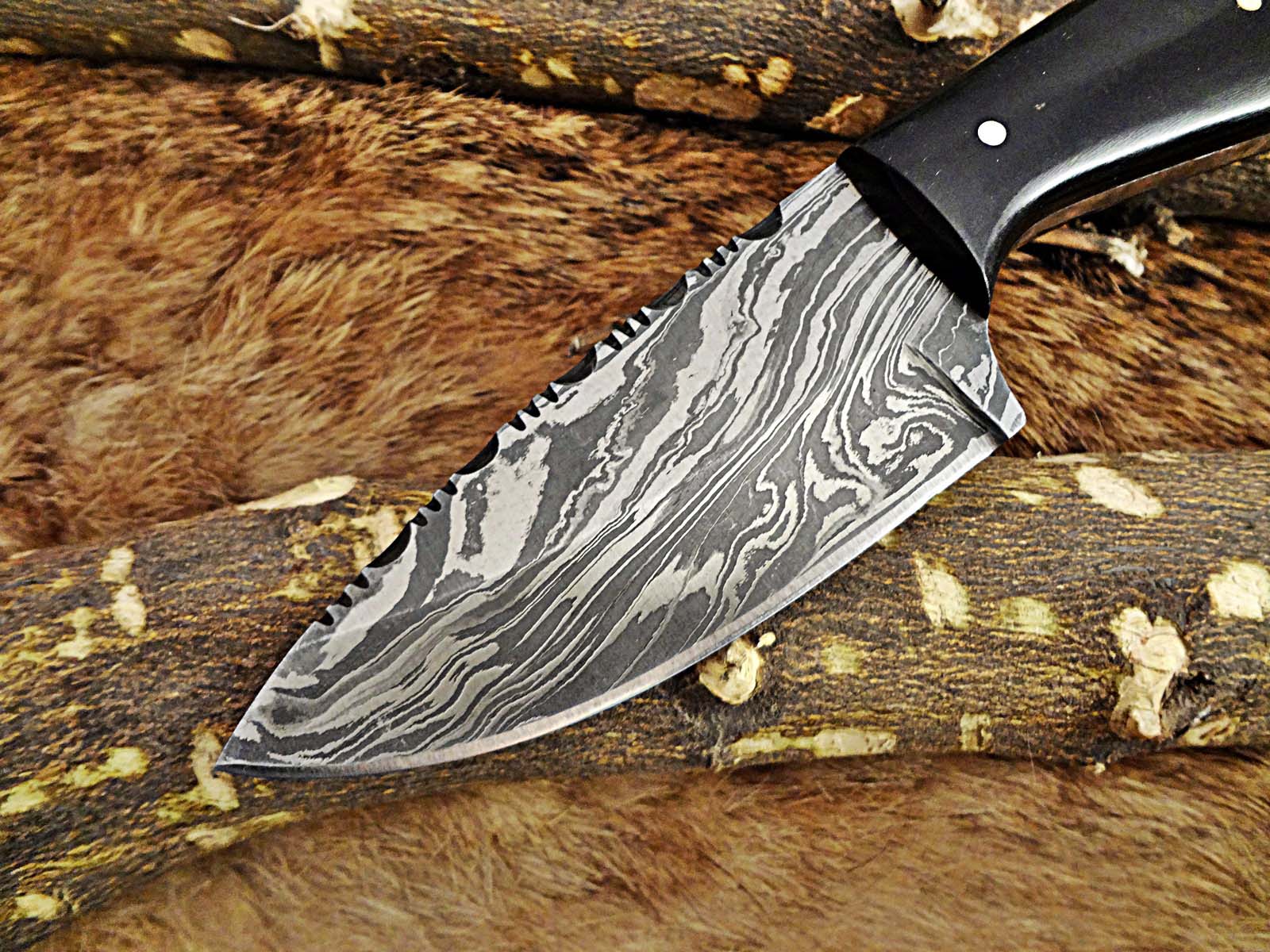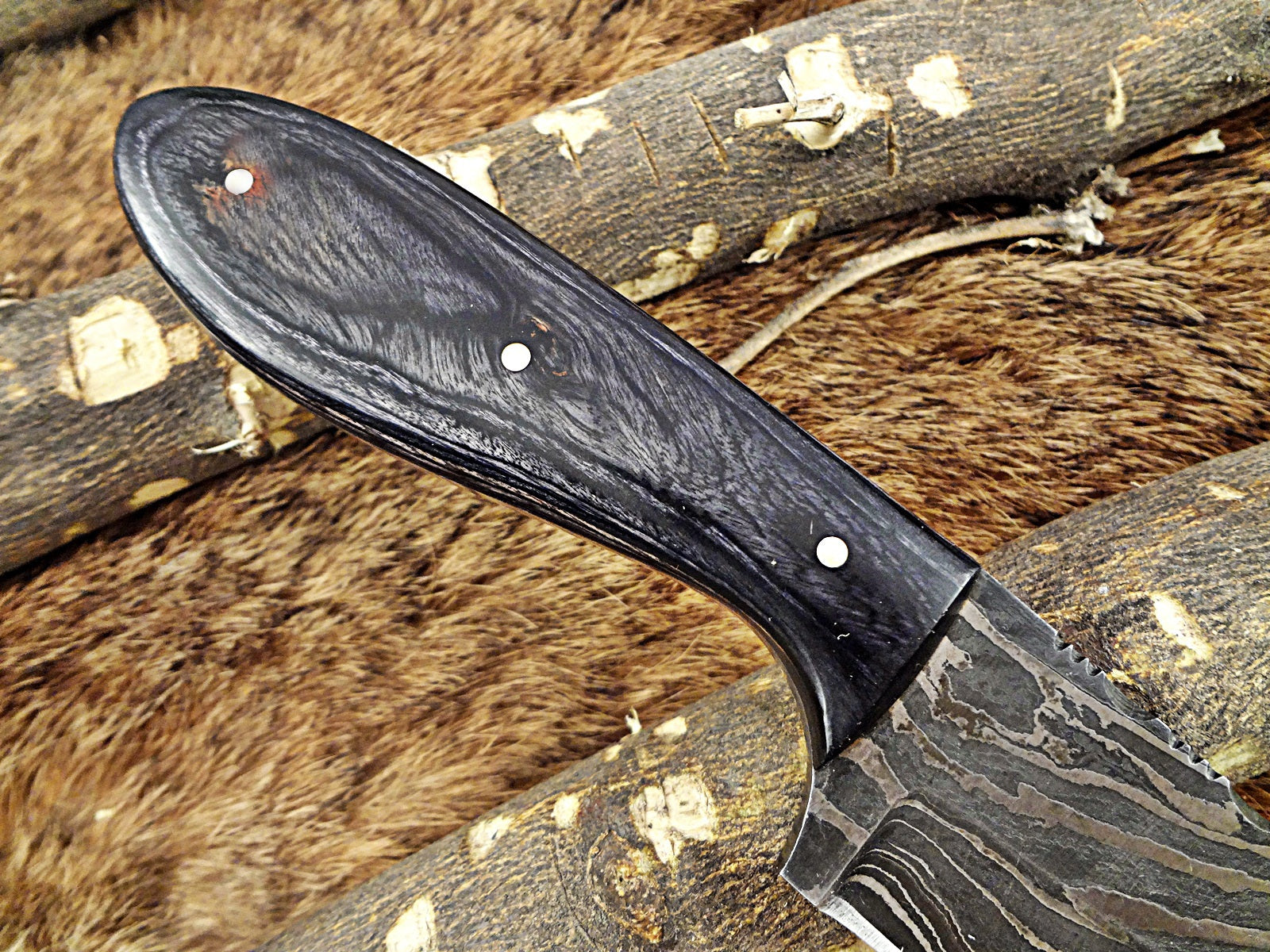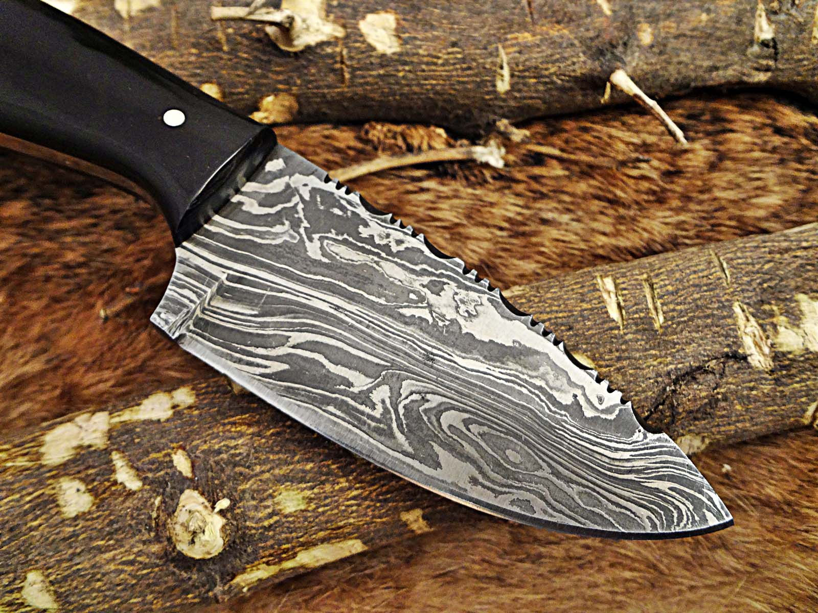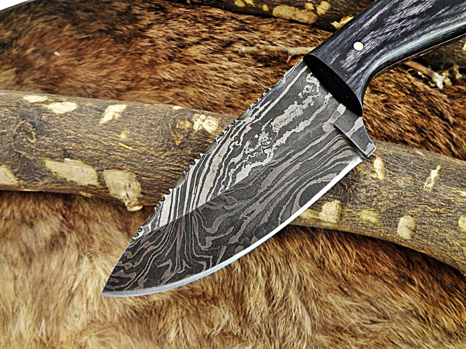 - Approximately 5 mm Thick Twist pattern Damascus steel blade with gut hook