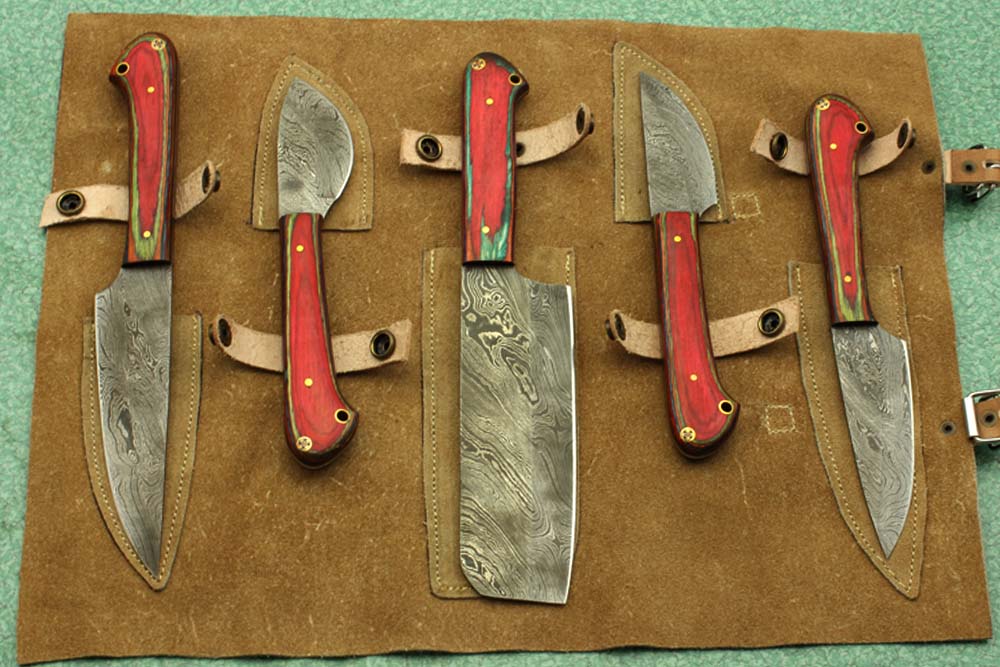 - Comes with a Roll able Goat Suede Leather sheath with custom pockets for each knife.