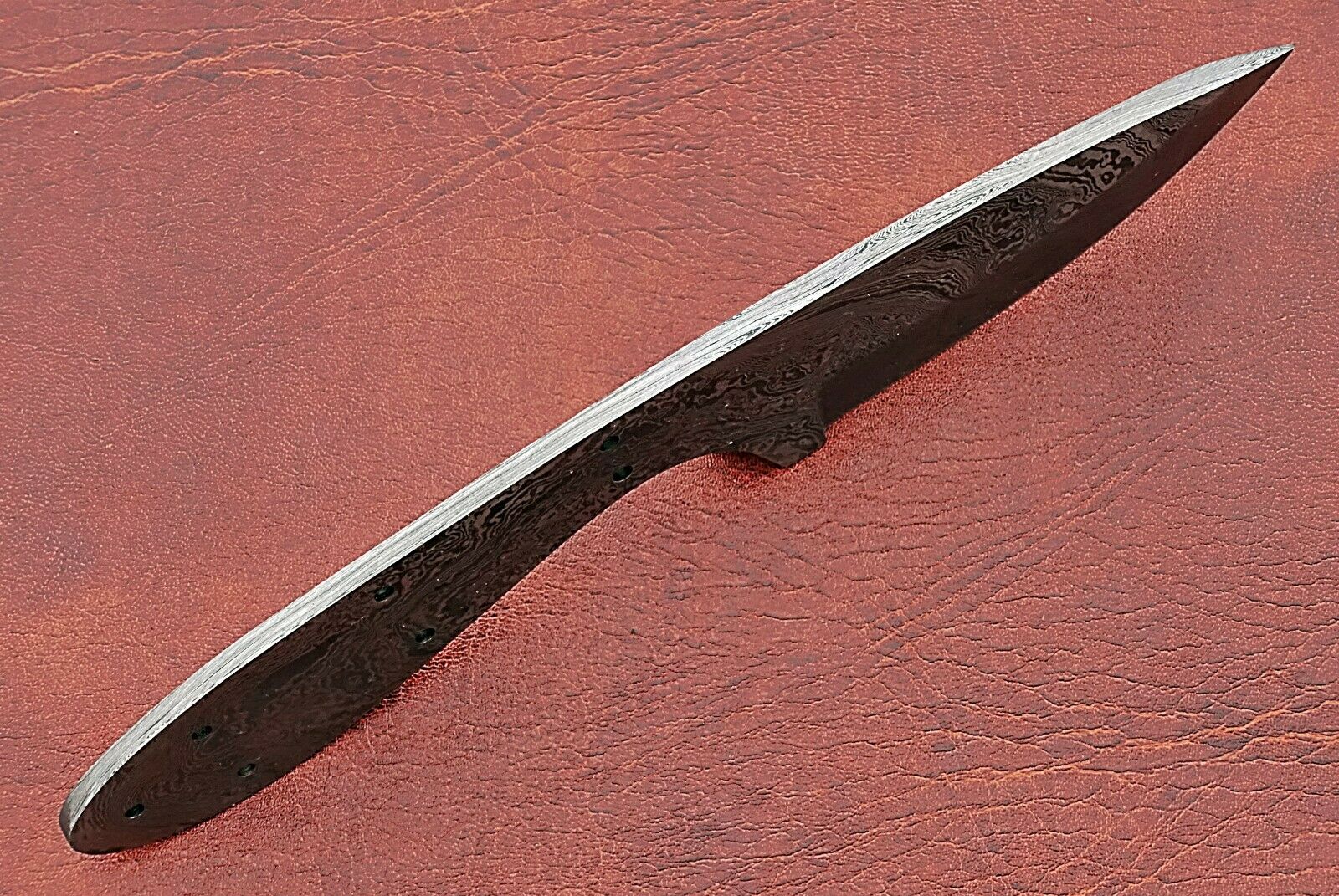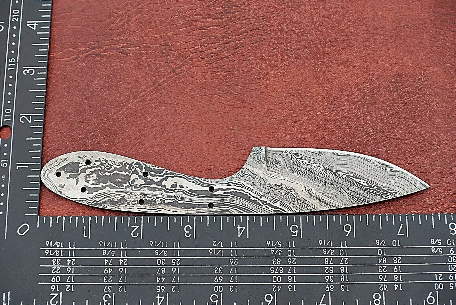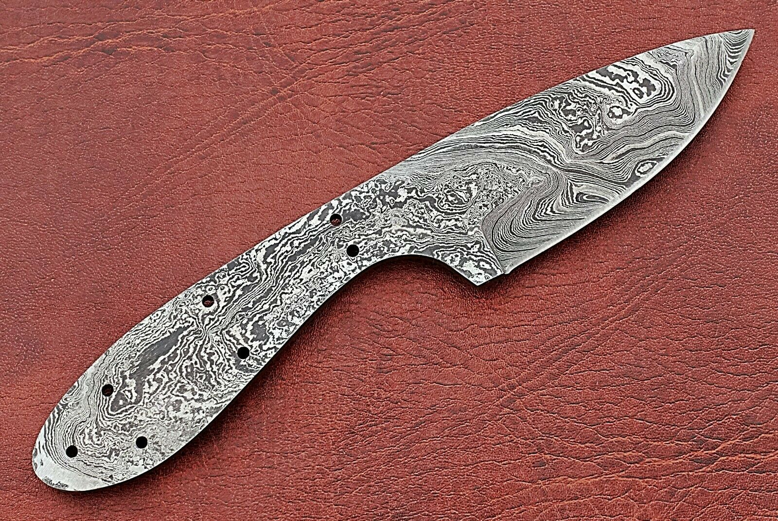 7.5" Damascus steel drop point blank blade pocket knife with 3" cutting edge, Oval scale with 7 pin holes