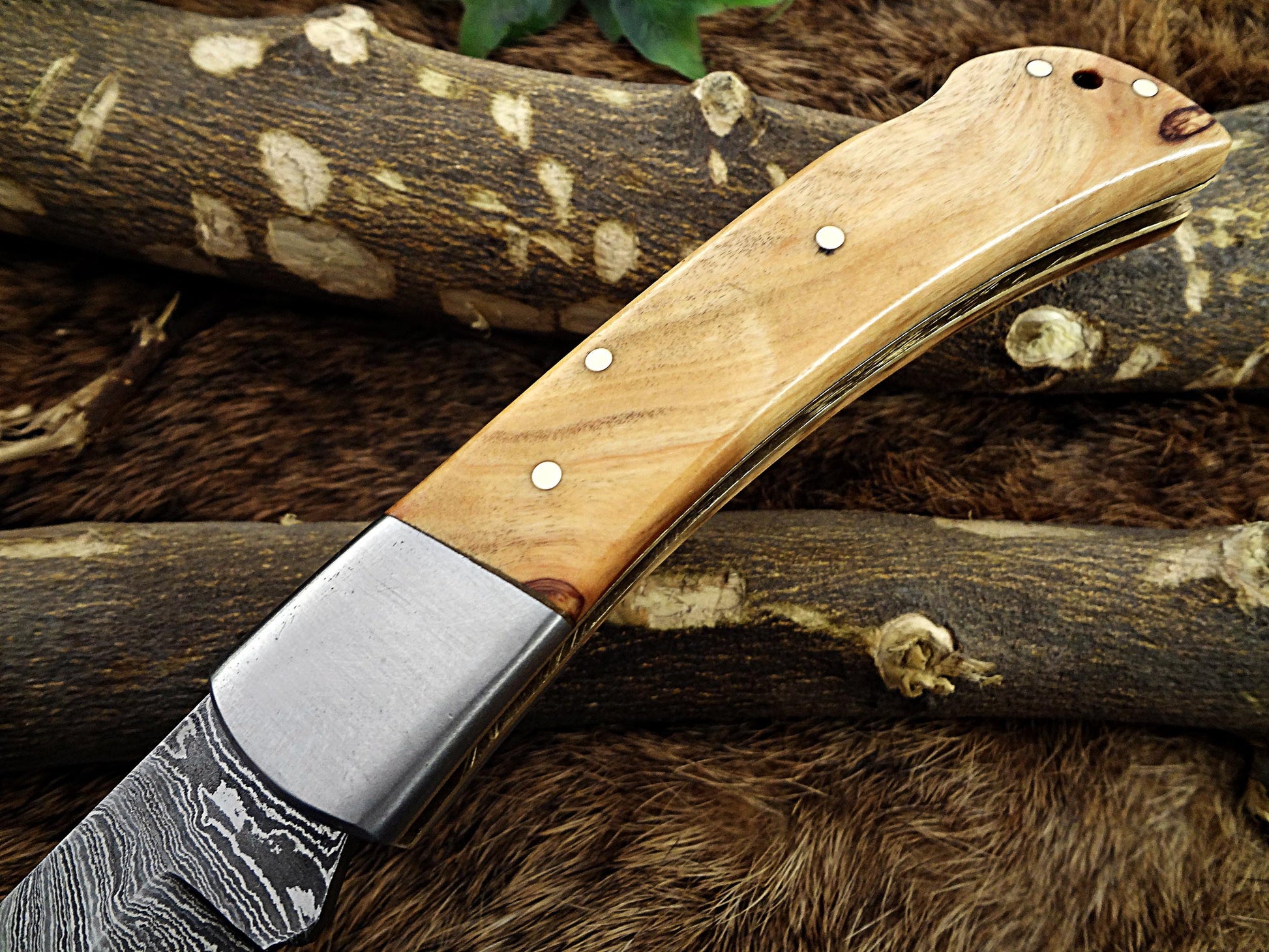 Natural Kao wood scale with stainless steel bolster 4.5 Inches folded length Equipped with strong back locking system