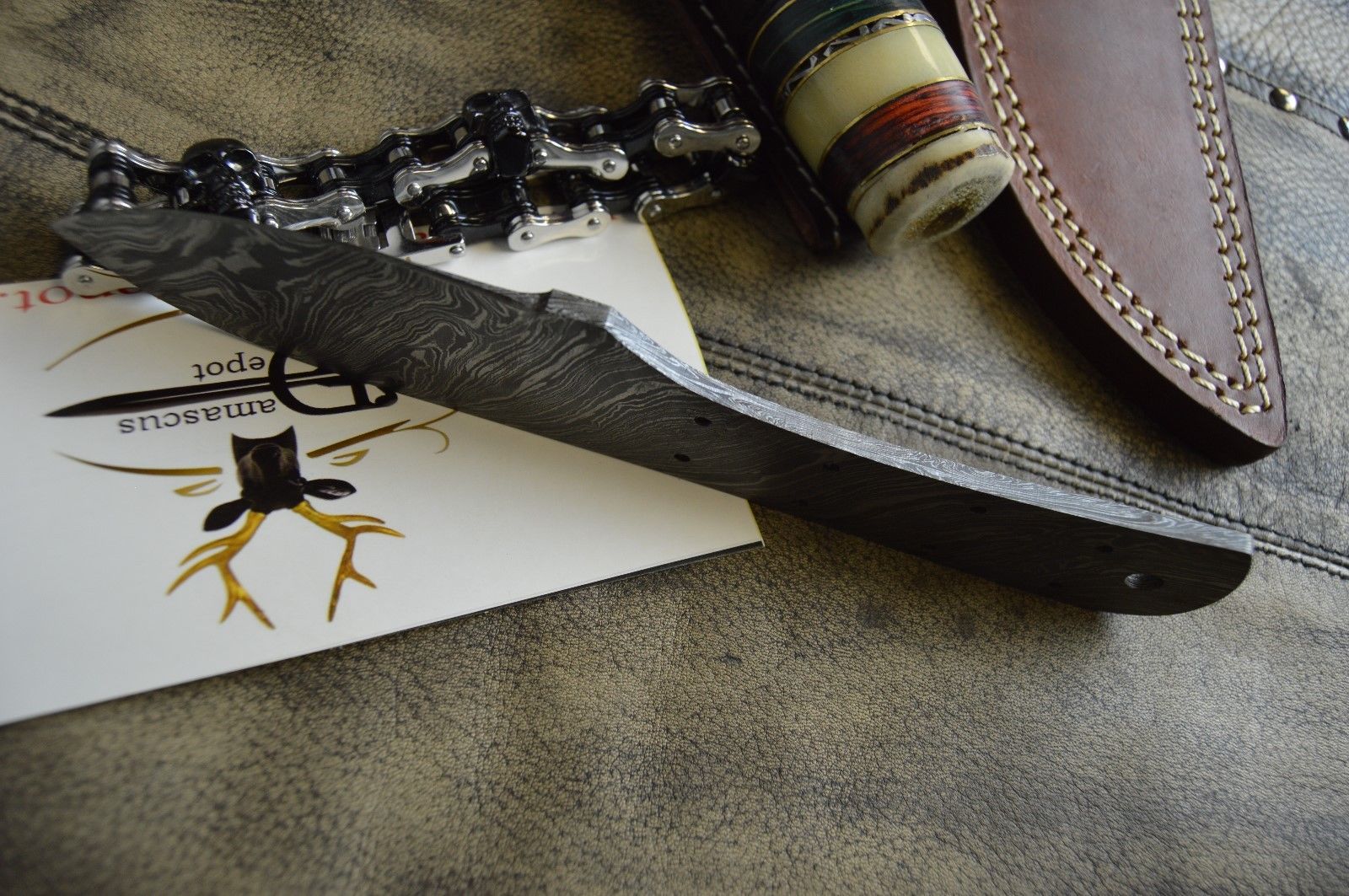 Our Damascus steel is prepared by forging over 465 layer of high carbon and low carbon steel.