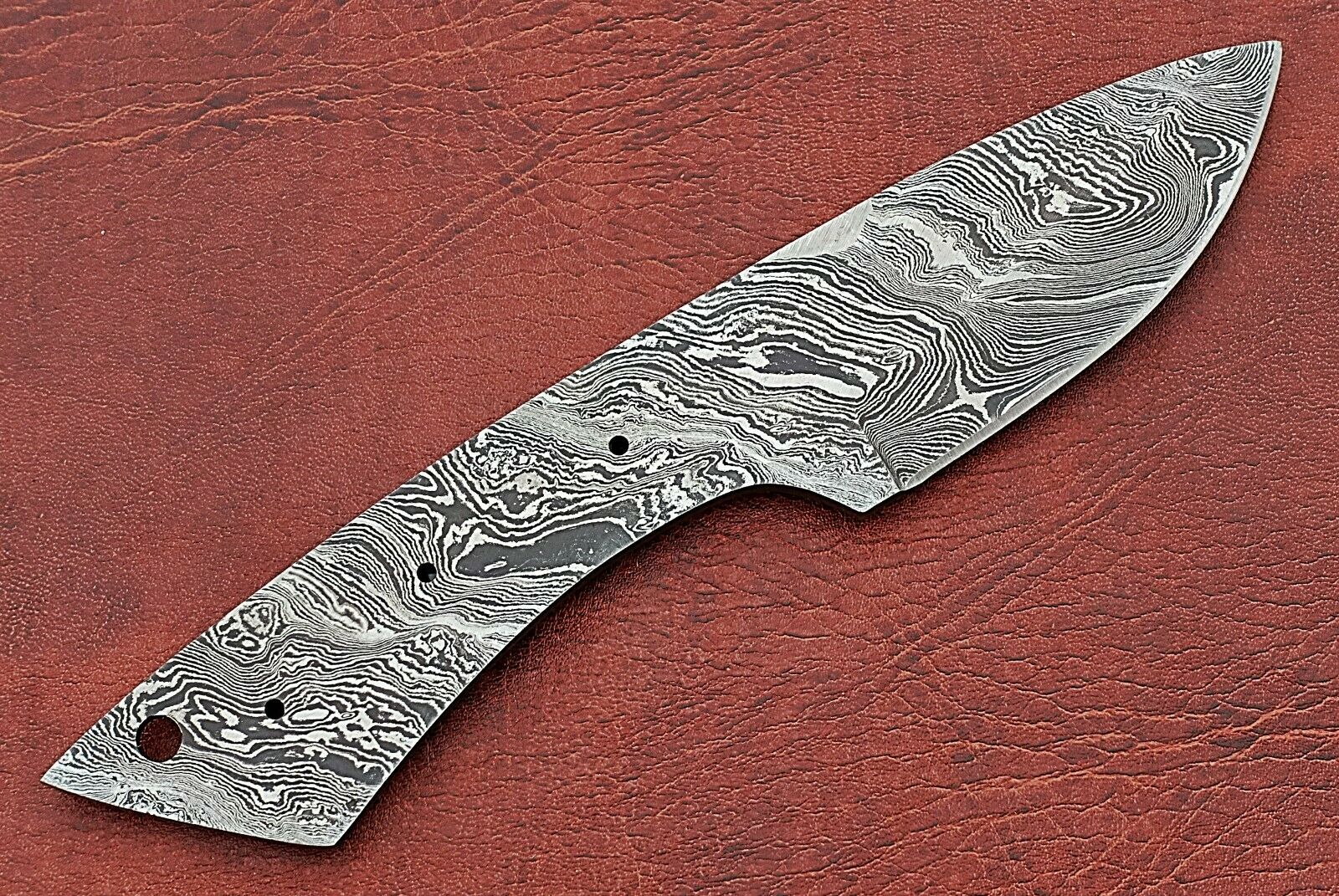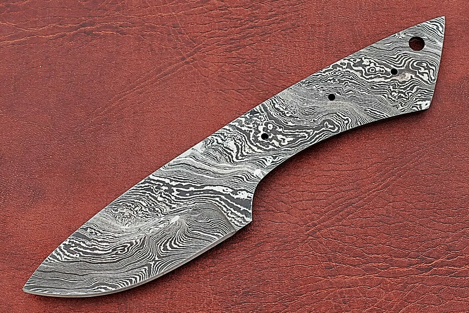 7.75" Damascus steel Drop point blank blade pocket knife with 3.25" cutting edge, 4.25" scale with 3 pins & Lace holes