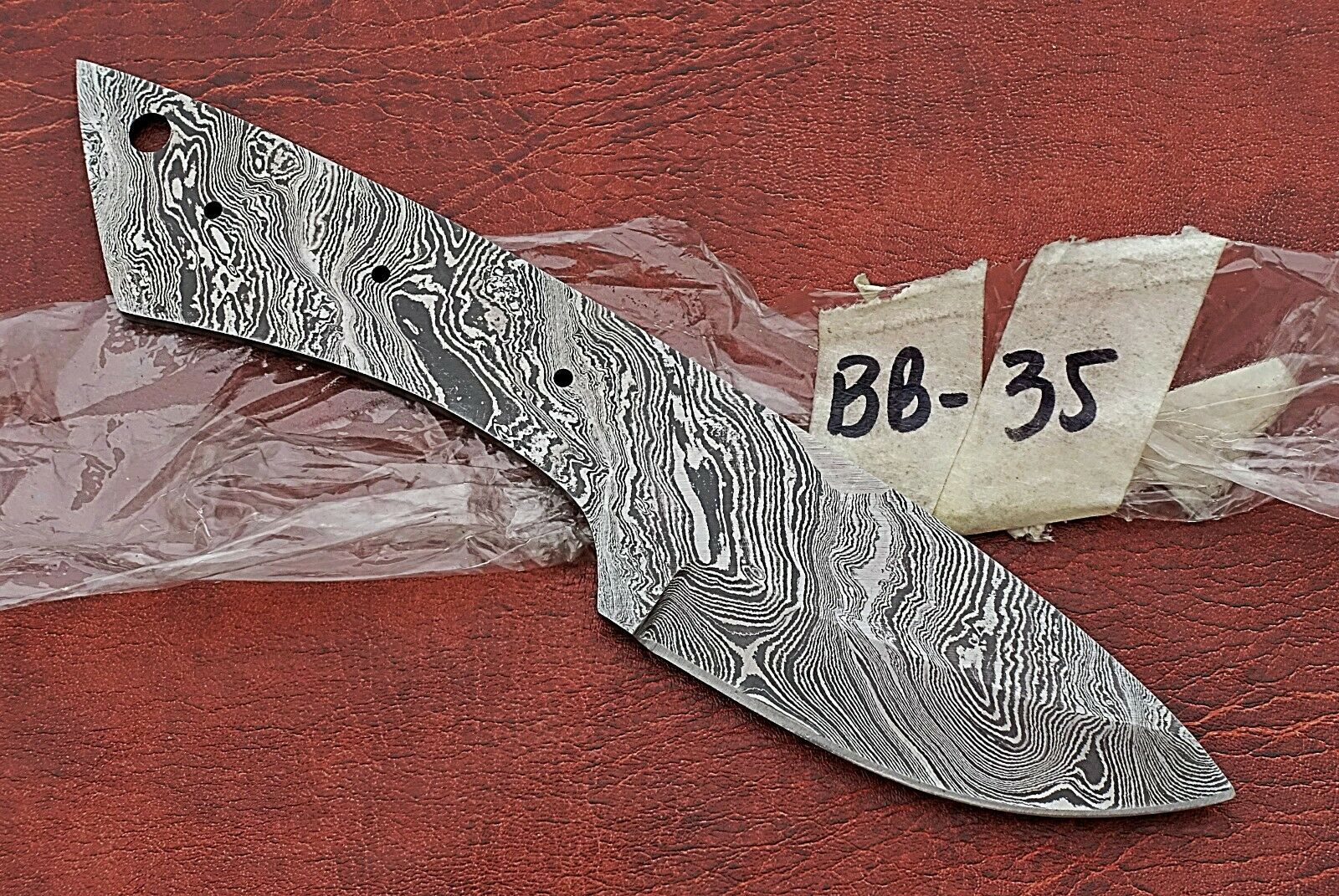 7.75" drop point Damascus steel blank blade pocket knife with 3.5" cutting edge