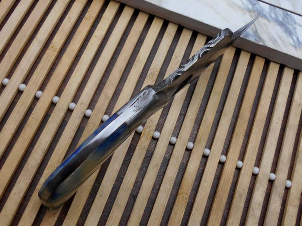 3.5 Inches long Colored camel bone scale with Damascus bolster