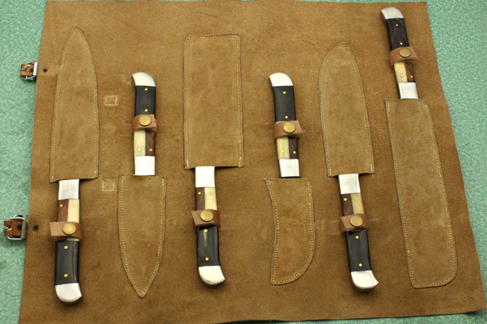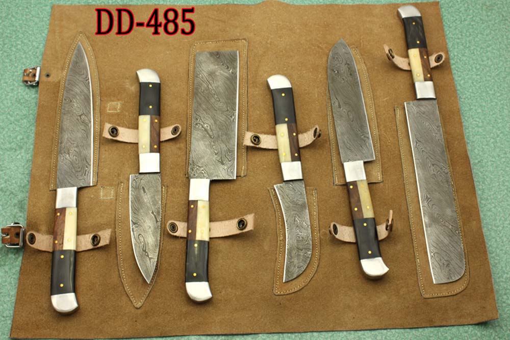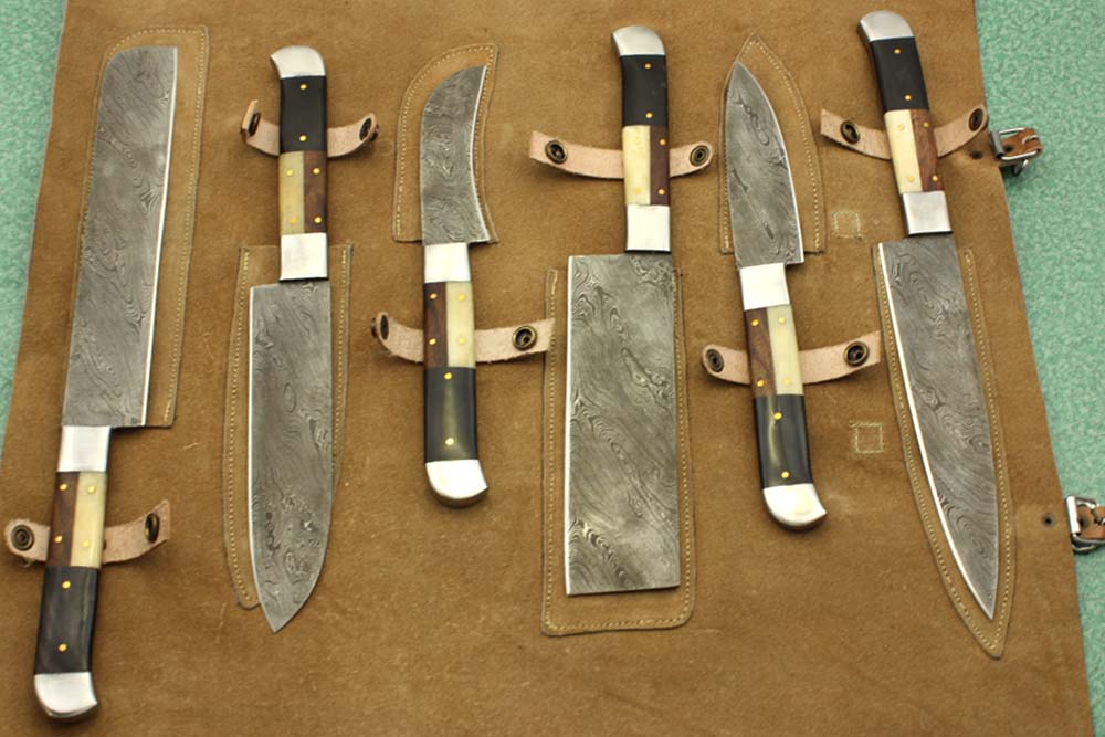 - Custom made hand forged Damascus steel full tang blade kitchen knife set