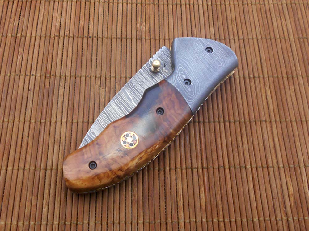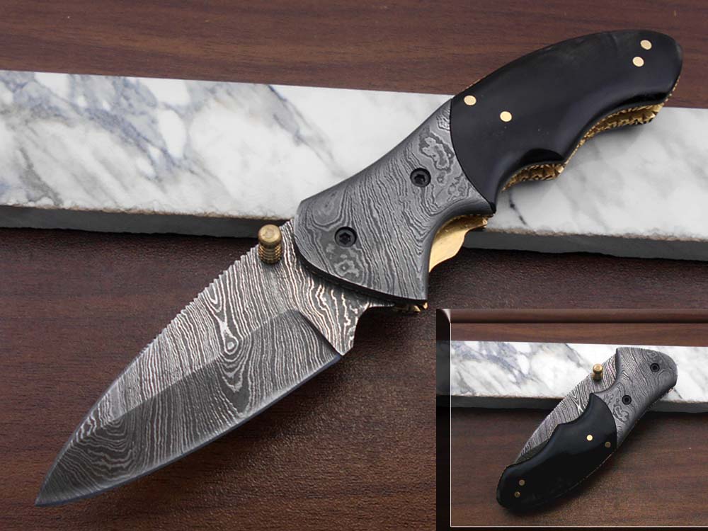 - Available in Kao & rose wood, Bull horn, Camel bone and burned bone scale scale with Damascus Bolster
