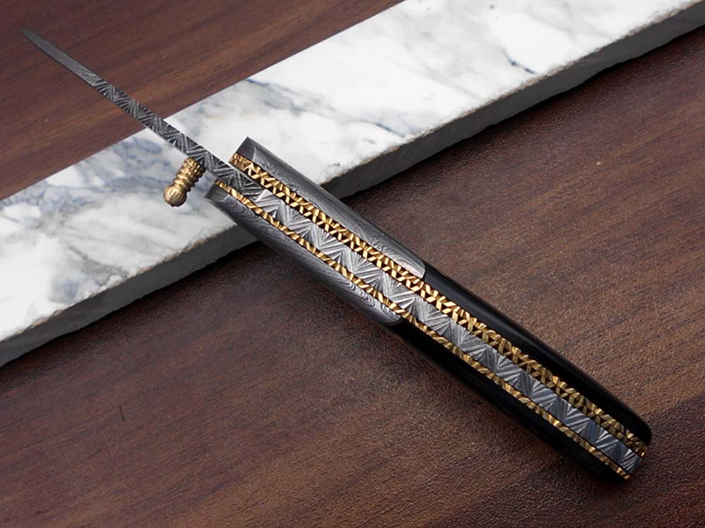 - Blade is made of Damascus steel by forging the 1095 and 15N20 high and low carbon steel with hundreds of layers folded