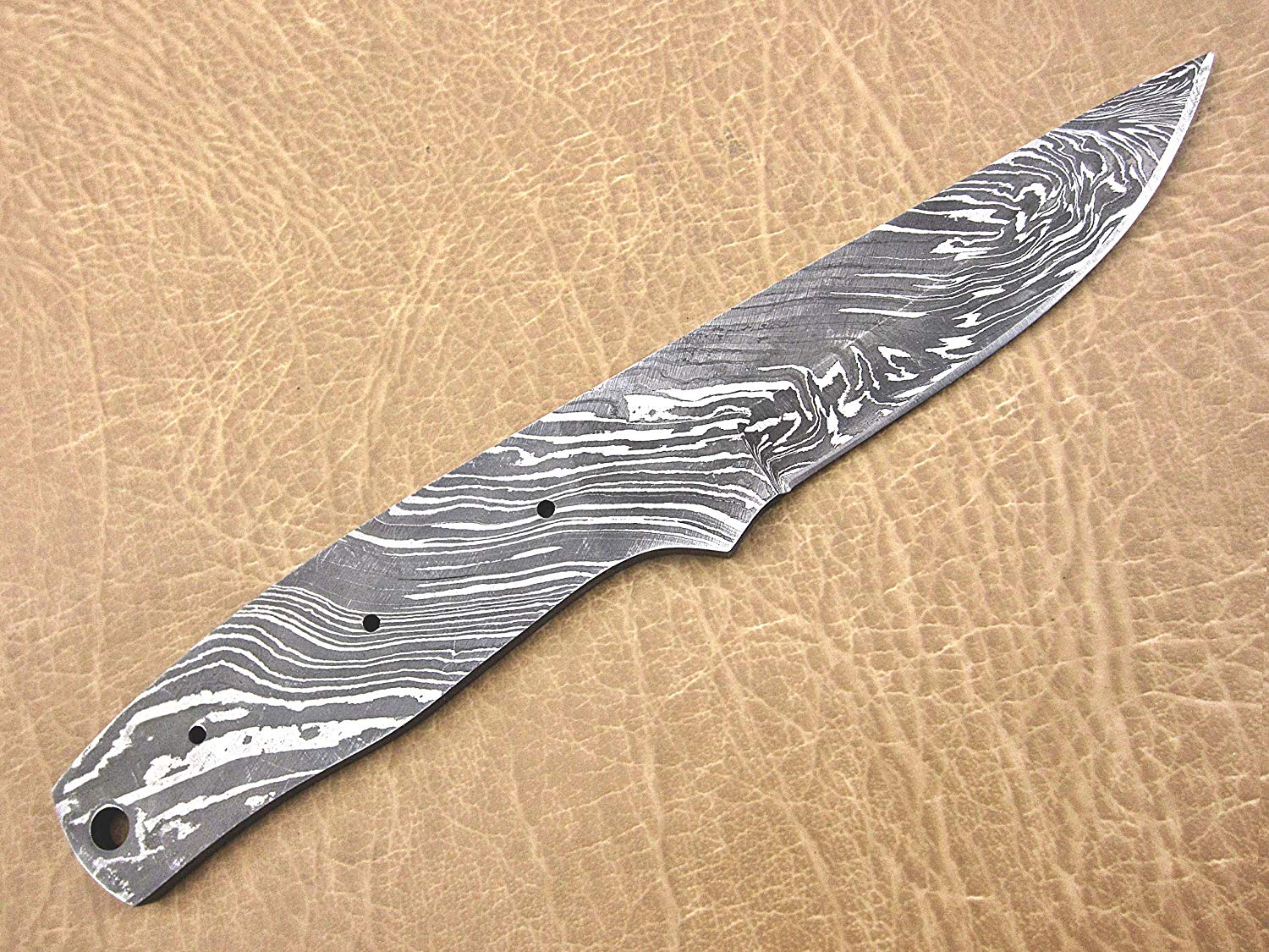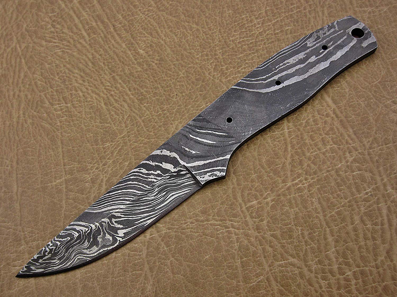 8.25 inches Long Hand Forged Damascus Steel Blank Blade Skinning Knife with 3 Pin Hole & an Inserting Hole Space 4 inches Cutting Edge