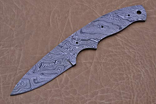 8.25 inches Long Hand Forged Damascus Steel Blank Blade Skinning Knife with 3 Pin Hole & an Inserting Hole Space 4 inches Cutting Edge