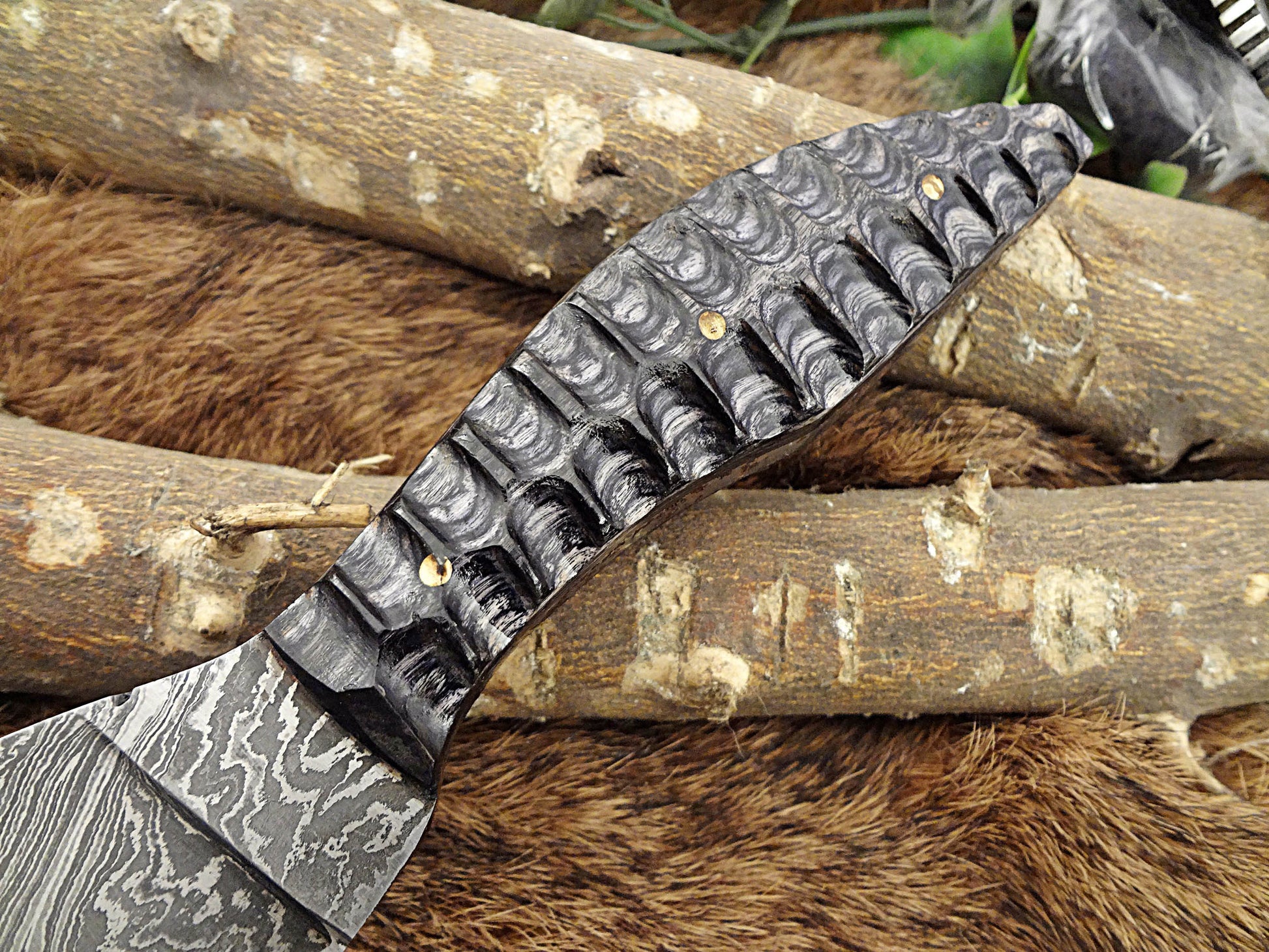 Our Damascus steel is prepared by forging over 465 layer of high carbon and low carbon steel.