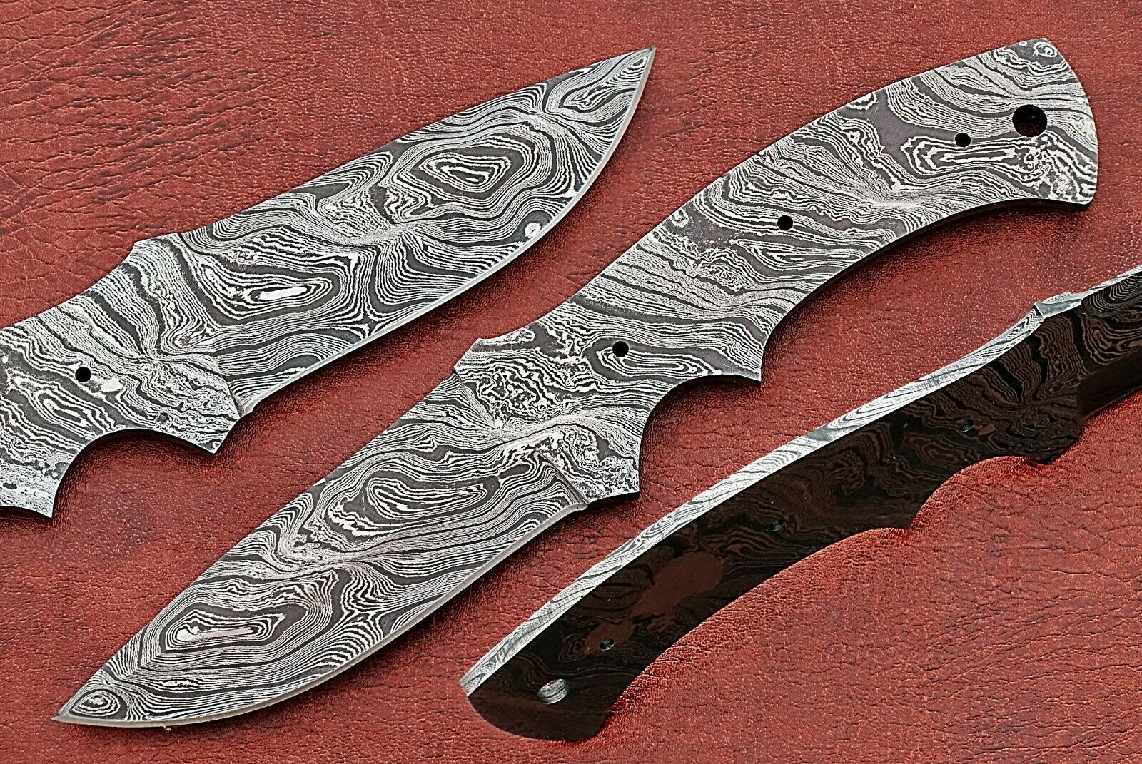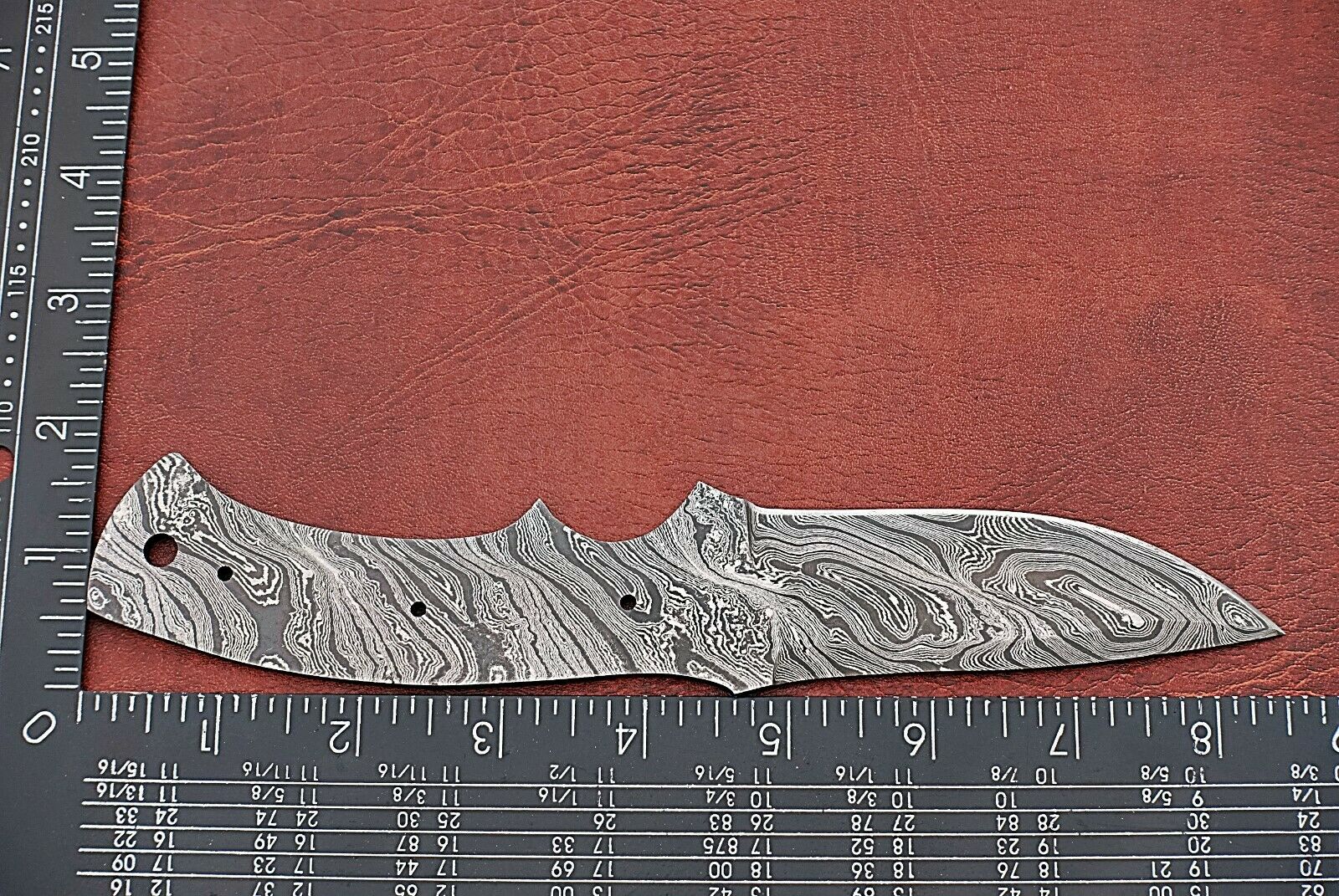 8.5" long Damascus steel drop point blank blade, 4" cutting edge