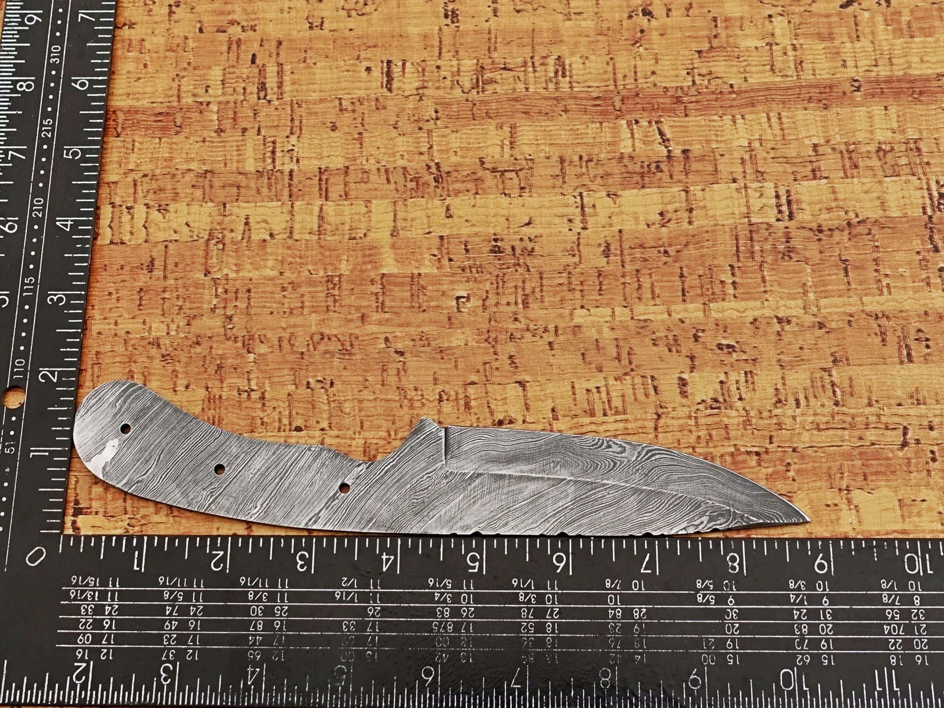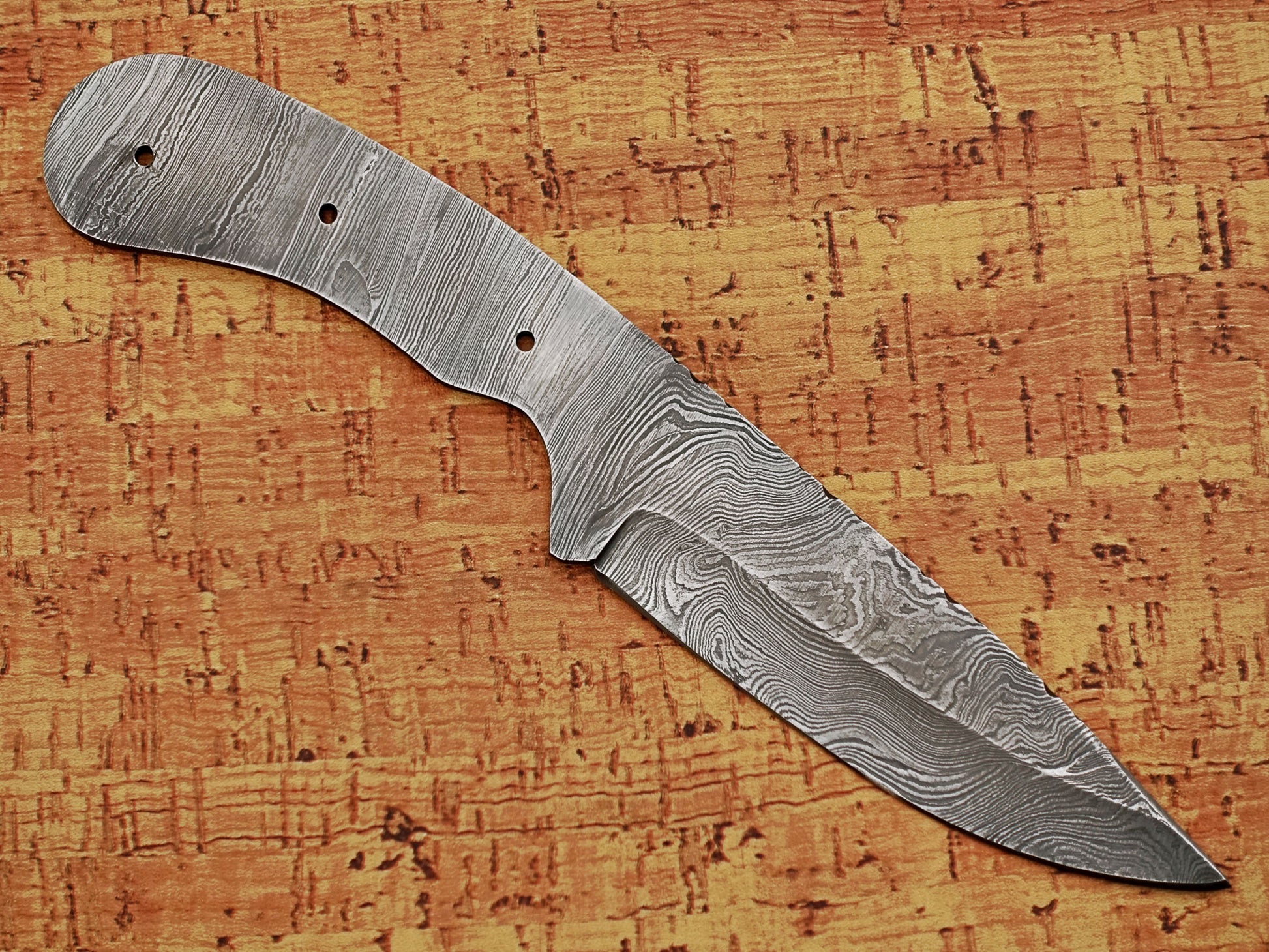 8.75 inches long drop point blank blade, hand forged twist pattern Damascus steel blank blade skinning knife with 3 Pin hole & finger groove, 4.5 inches cutting edge