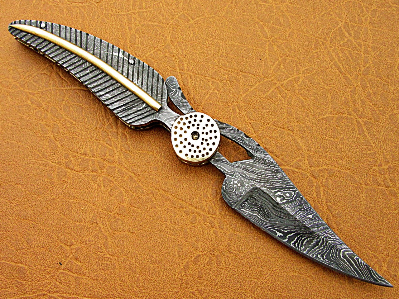 Overall 8″ Long Leaf shape Folding knife with 3.5″ long Damascus cutting edge